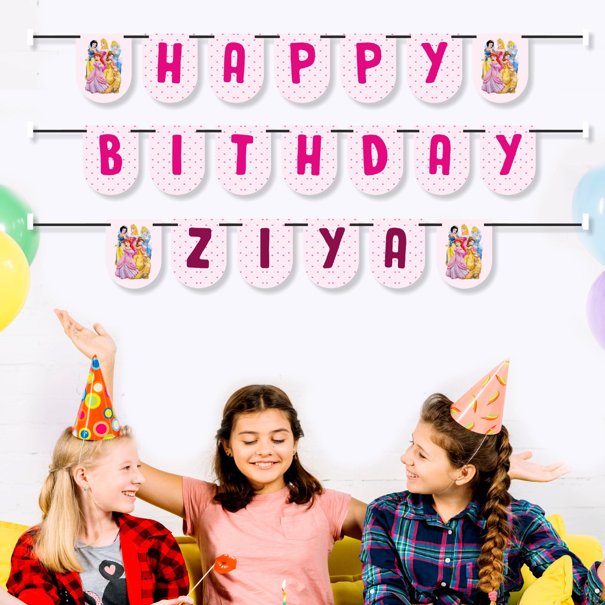 Give her the royal treatment with our princess theme birthday decoration name bunting! Personalize your princess theme birthday with her name in elegant royal letters. A stunning addition to your princess party decorations. Shop the best princess birthday party decorations today!