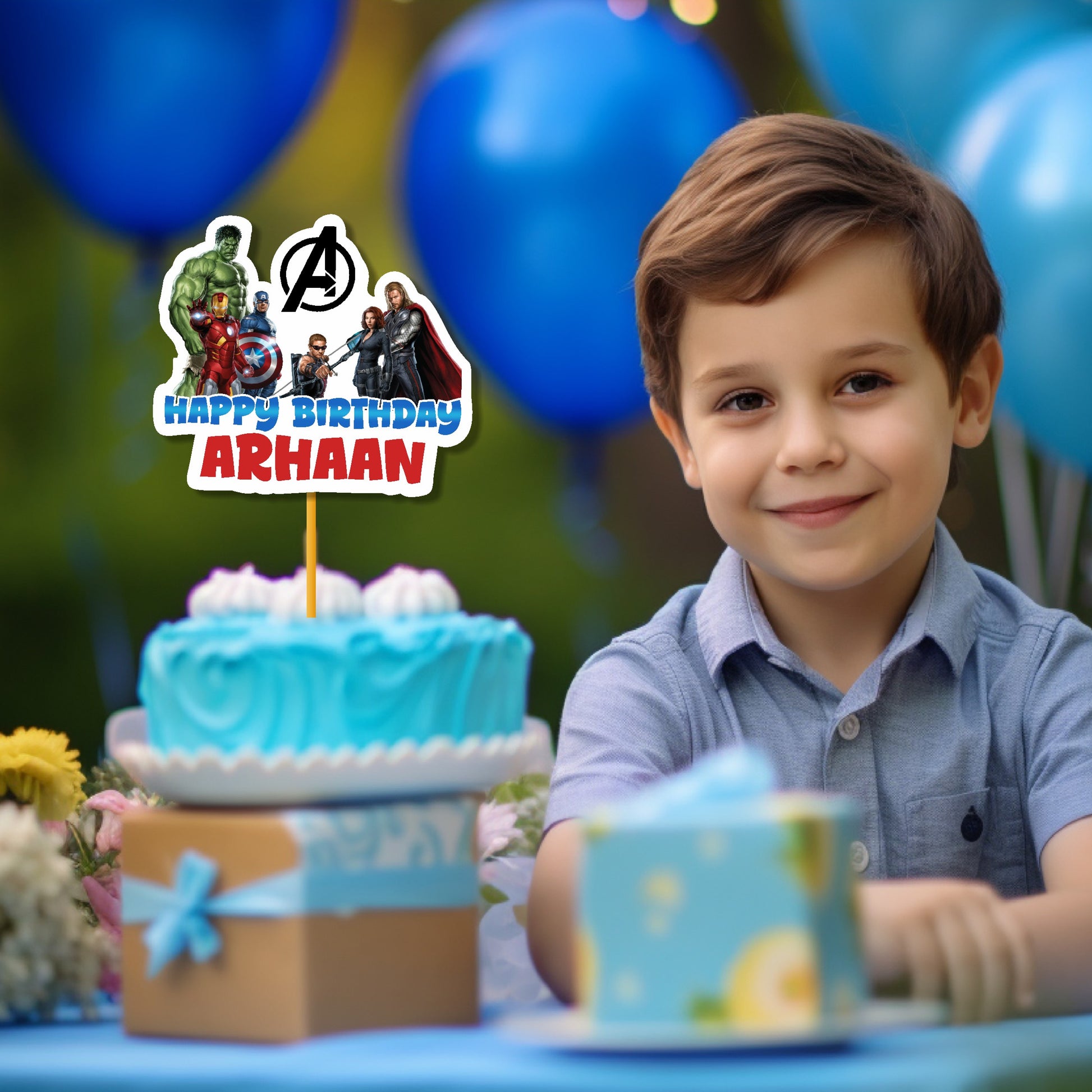 You saved the best for last! The cake topper is the absolute centerpiece of the dessert table and requires a powerful, custom design. Crown your birthday cake with an epic centerpiece that screams action! This Customized Avengers cake topper is a multi-layered, three-dimensional decoration designed to make the birthday child feel like the true leader of the Super Squad.