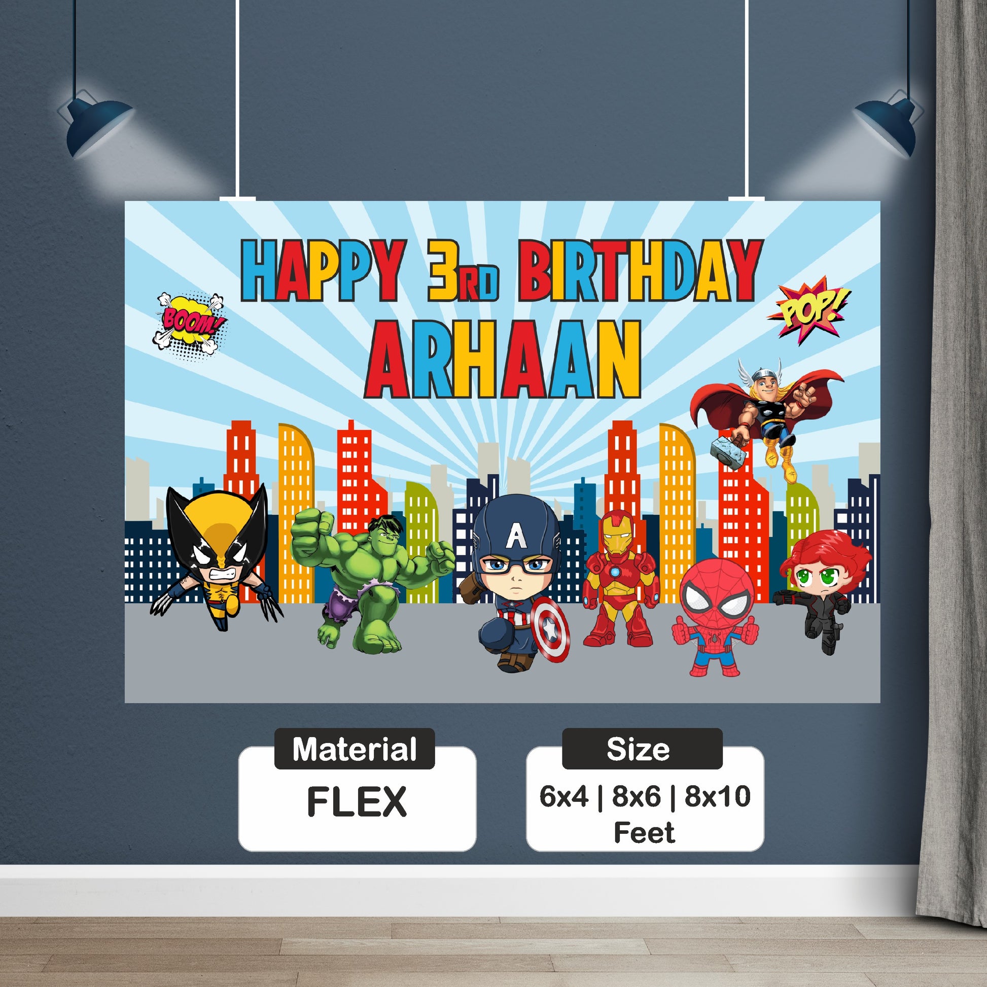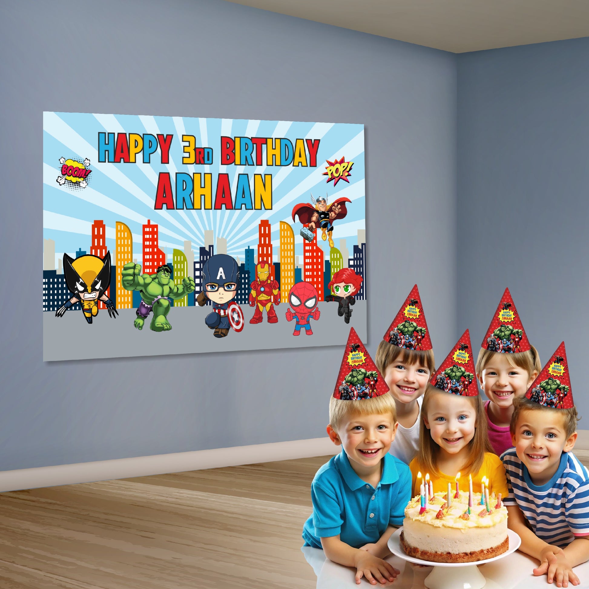 A customized backdrop is absolutely the biggest and most impactful piece of party decor! It serves as the primary photo zone and the anchor for the entire theme. Create a spectacular, cinematic setting for your party with this huge, Customized Avengers-themed backdrop! Designed to serve as the ultimate photo booth background and a commanding display behind the cake or main table, this piece guarantees an epic atmosphere.