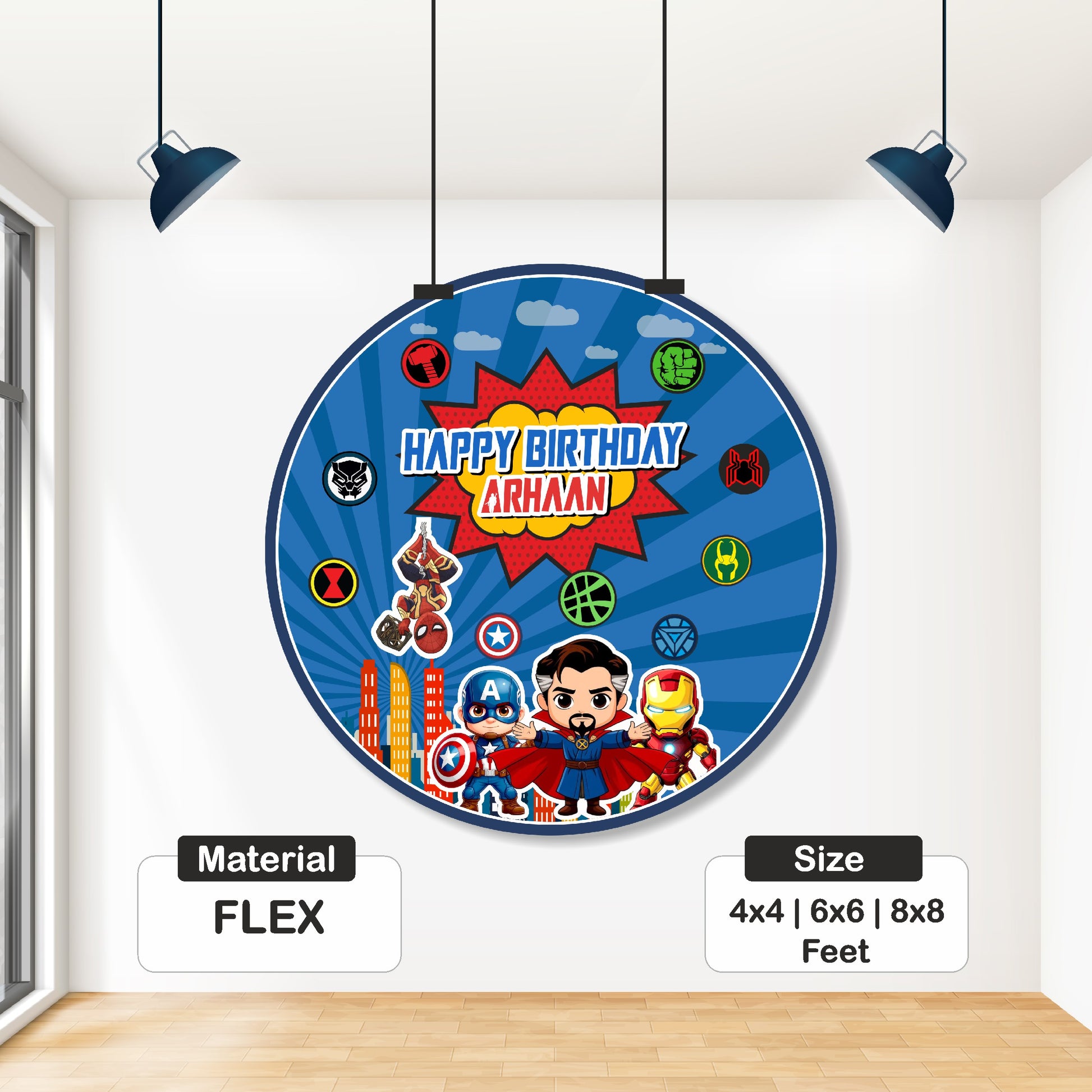That's a fantastic choice for a dramatic, space-saving display! A Customized Round Banner provides a unique, emblem-like focal point, often mimicking the Avengers logo or Captain America's shield. Designed to look like a giant superhero emblem, it makes the birthday child the central figure of the Avengers team!