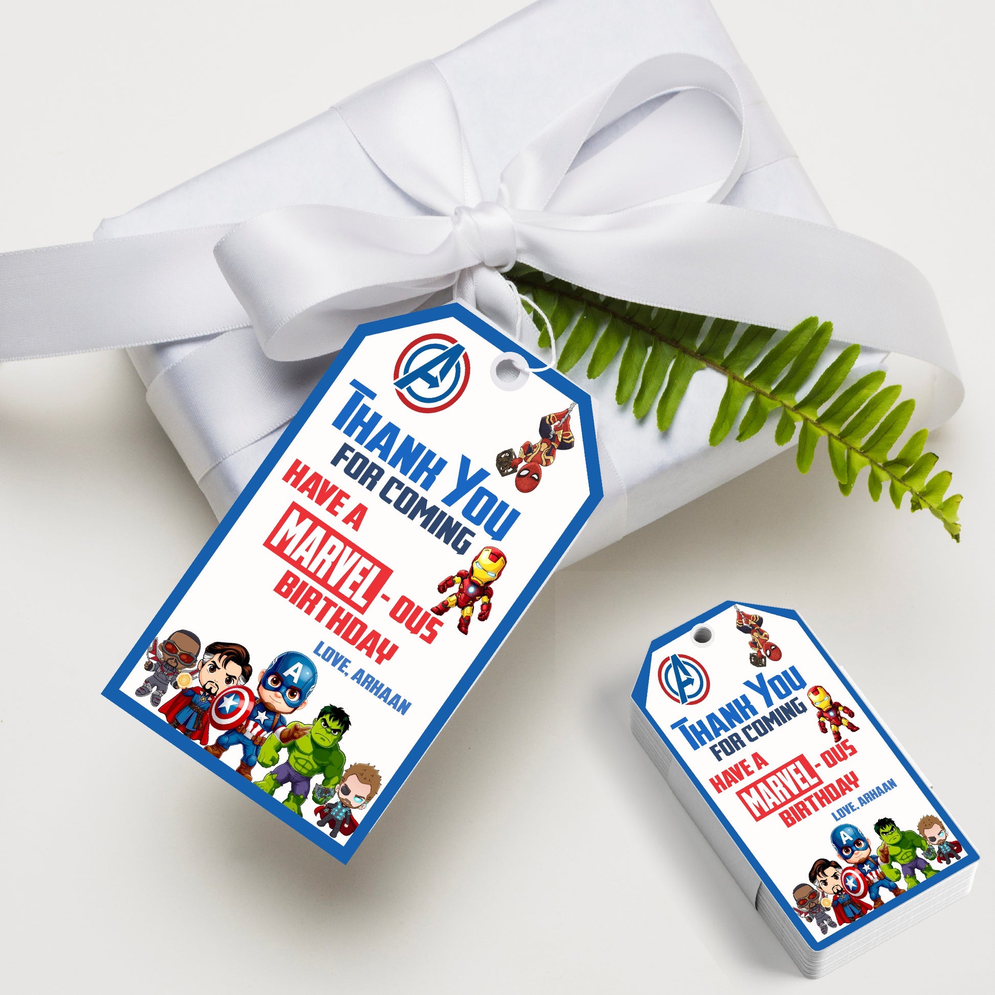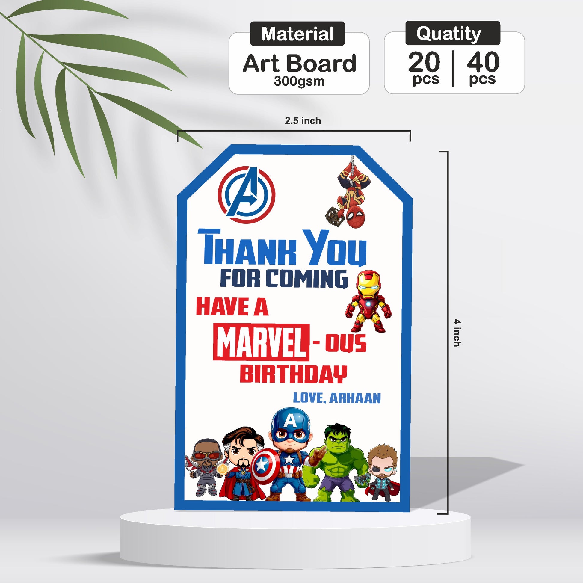 Show appreciation for every guest's attendance with these Customized Avengers Thank You Tags! Designed to be easily attached to party bags, treat boxes, or favours, these tags confirm that the birthday mission was a success, thanks to the visiting heroes.