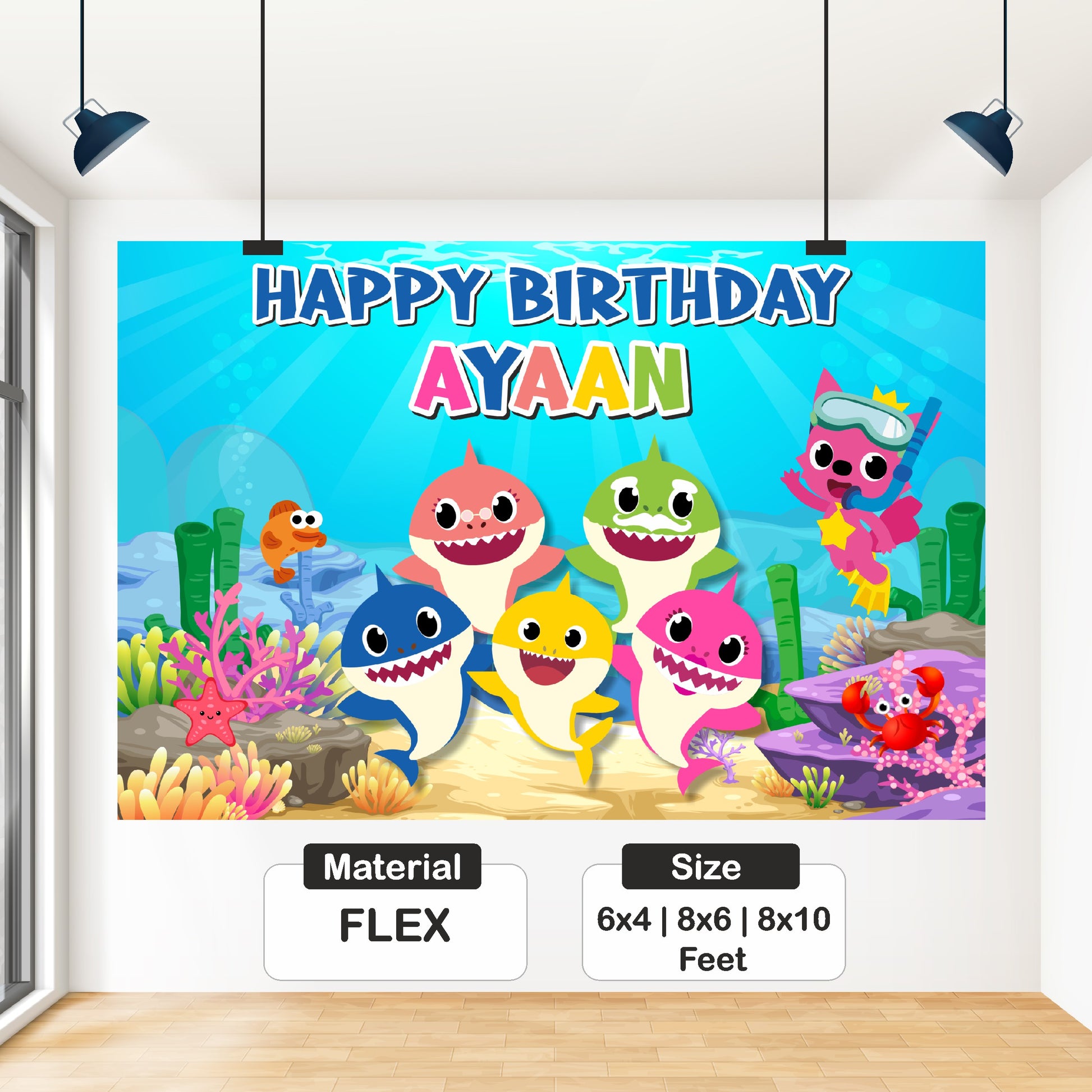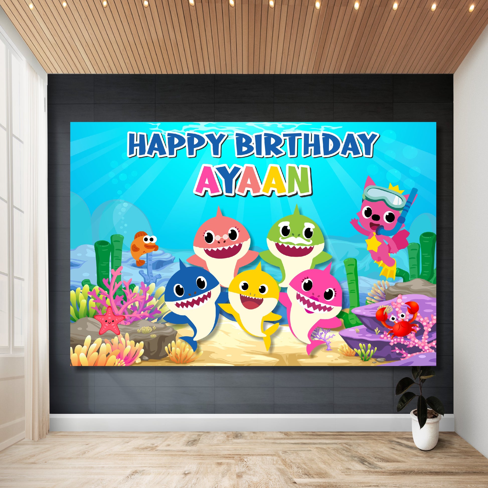 Doo doo doo doo doo doo! Get ready for a splashy celebration with a personalized Baby Shark Birthday Banner! This vibrant banner features the whole colorful shark family—Baby Shark, Mommy Shark, Daddy Shark, and more—swimming happily through the ocean. Customize it with your child's name and age to create the perfect centerpiece for your underwater party.
