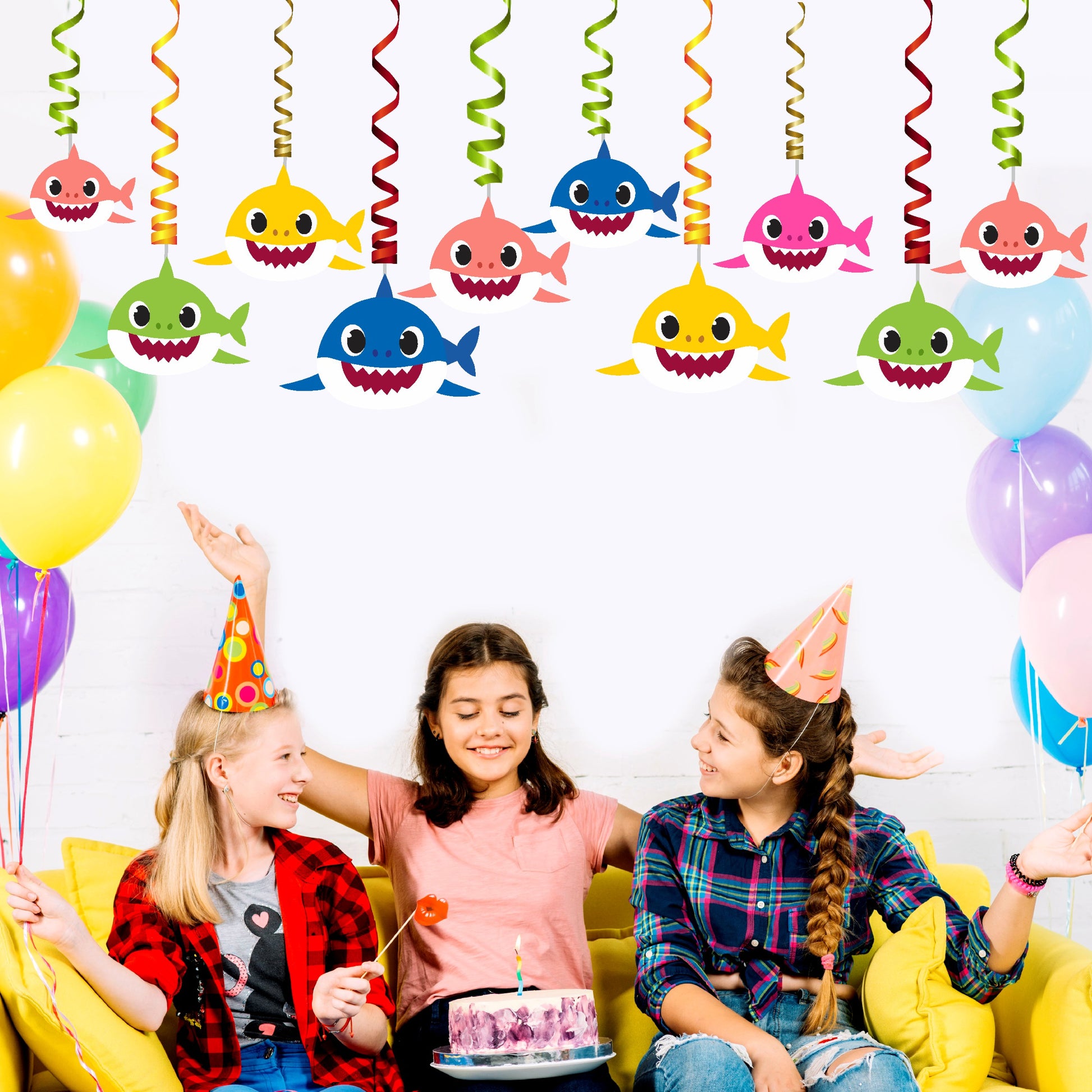 Add a playful whirl to your underwater party! Our personalized Baby Shark Hanging Swirls feature shimmering metallic spirals in bright ocean colors (like blue, pink, and yellow), suspending cheerful cutouts of Baby Shark and the whole family. These are fantastic for creating a fun, flowing ceiling display that mimics underwater movement and bubbles!