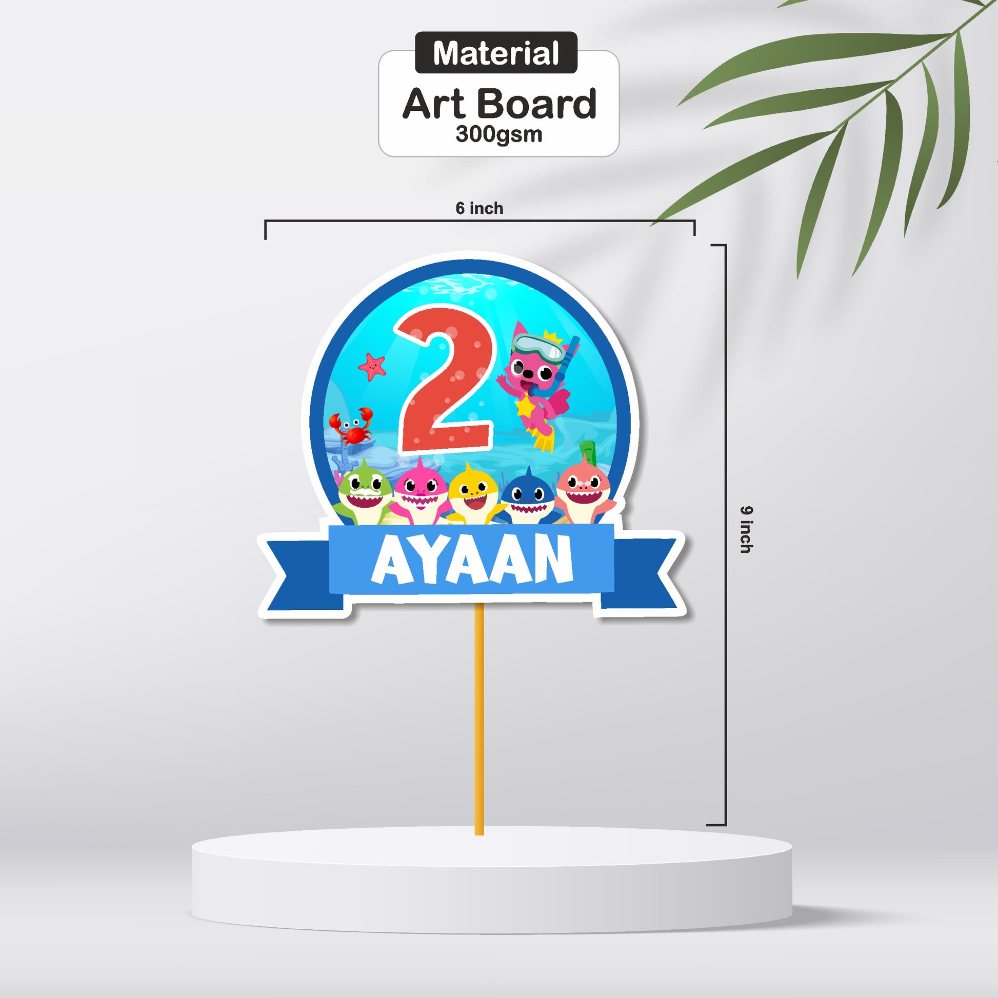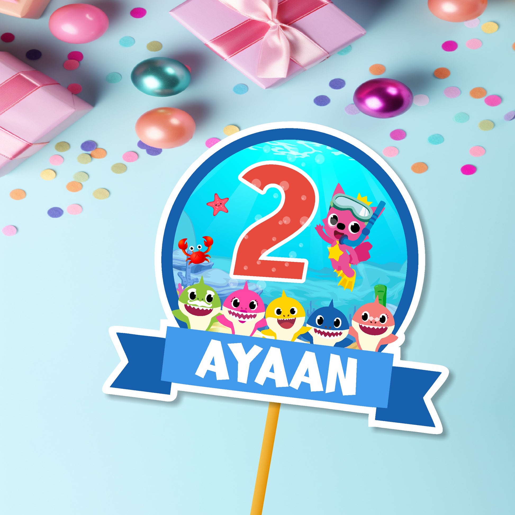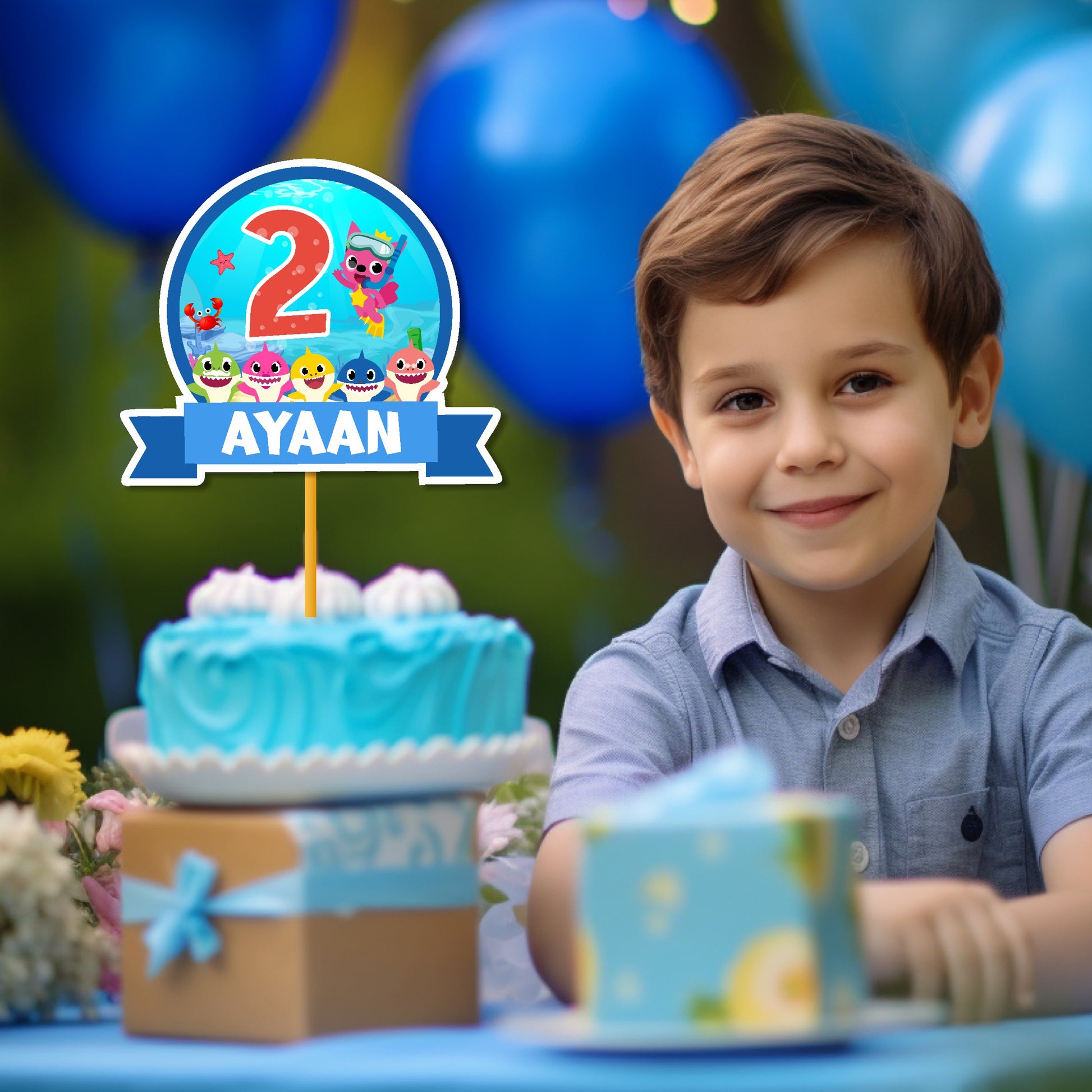 Make a splash on the centerpiece! Our personalized Baby Shark Cake Topper is the perfect way to finish your birthday dessert. This vibrant, multi-layered topper features Baby Shark and the whole family swimming happily among coral and seaweed. The topper is prominently customized with your child's name and age, making it a cheerful, eye-catching focal point for your ocean-themed cake!