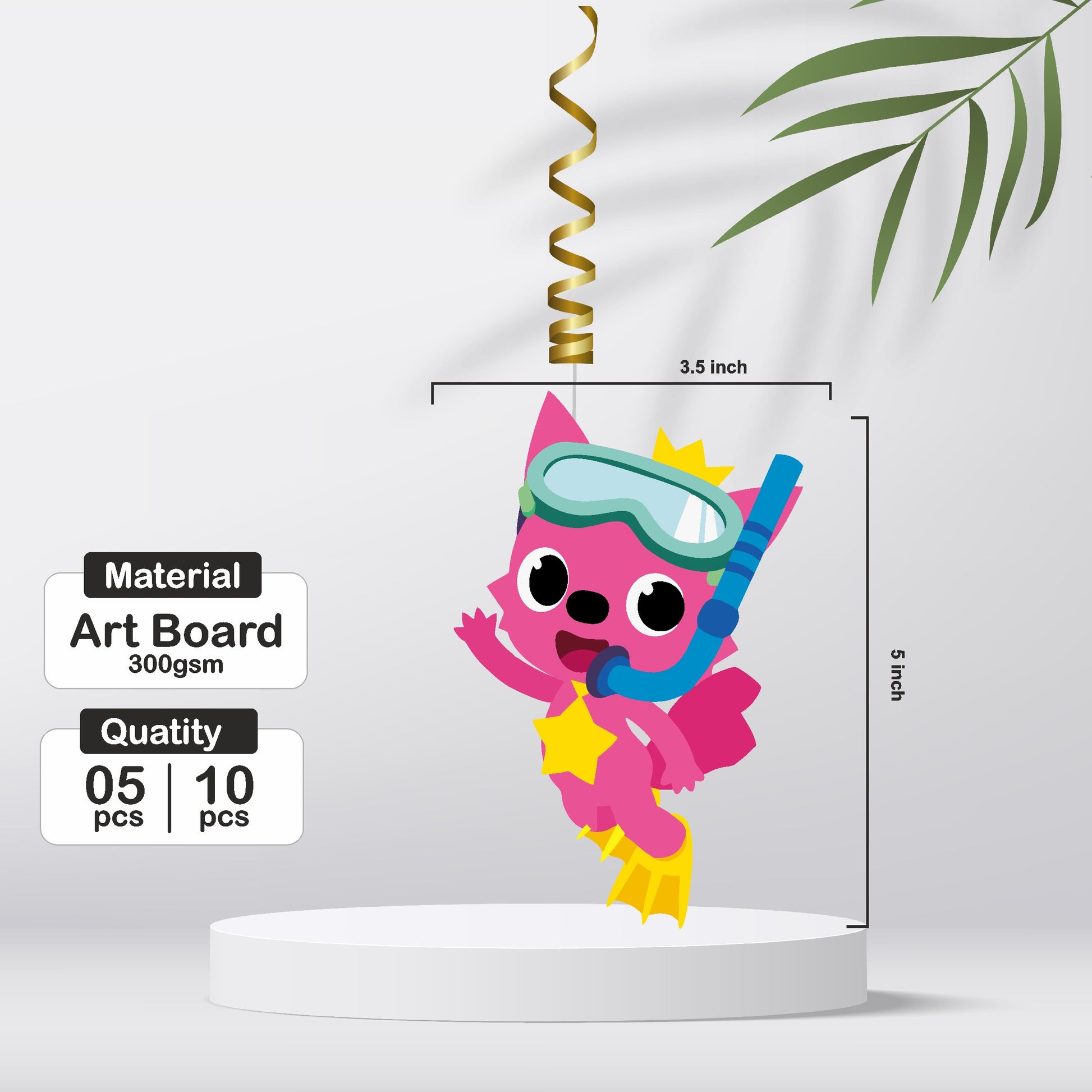 Add a playful whirl to your underwater party! Our personalized Baby Shark Hanging Swirls feature shimmering metallic spirals in bright ocean colors (like blue, pink, and yellow), suspending cheerful cutouts of Baby Shark and the whole family. These are fantastic for creating a fun, flowing ceiling display that mimics underwater movement and bubbles!