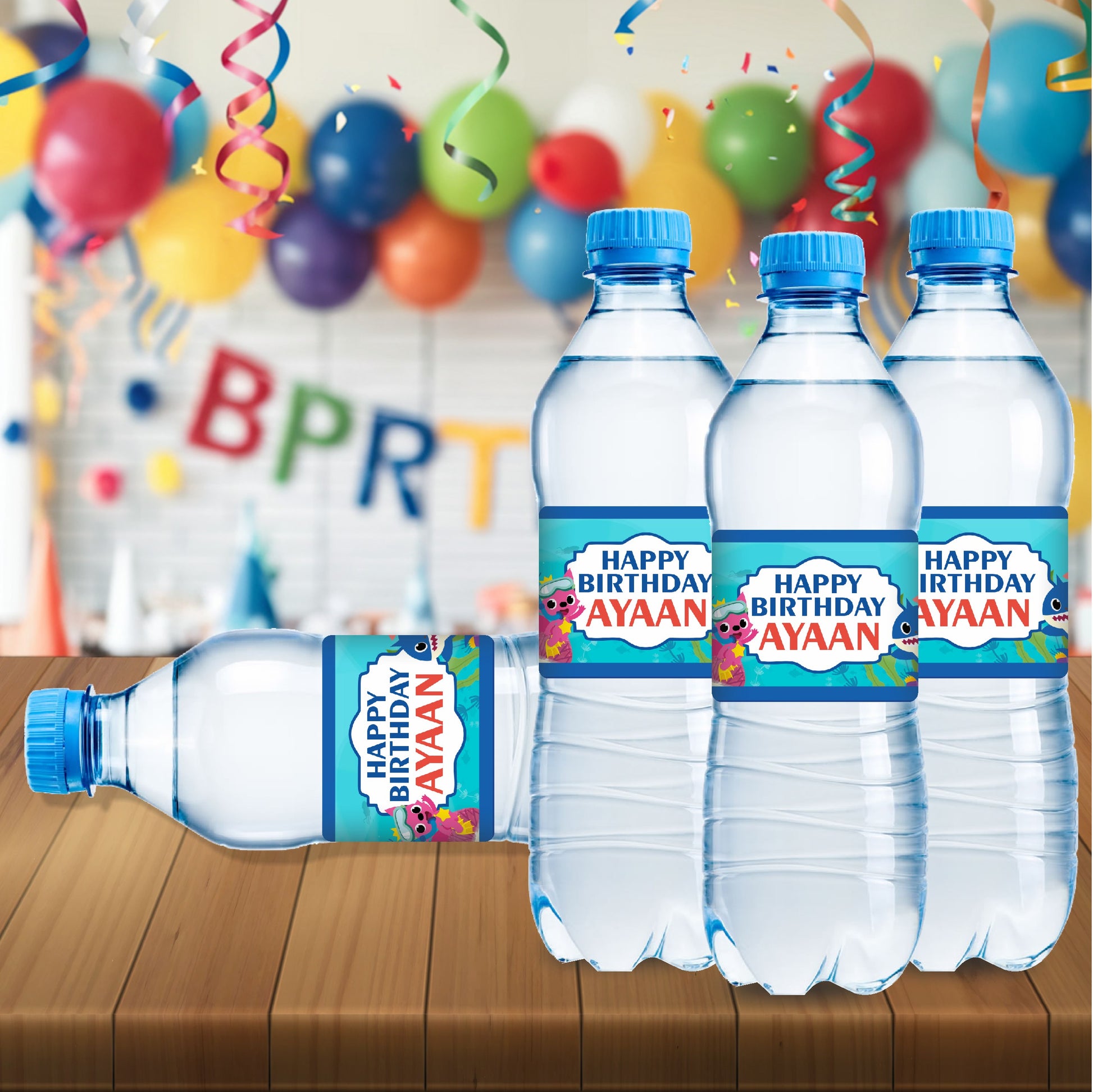Quench your thirst, doo doo doo! These personalized Baby Shark Water Bottle Stickers wrap around your bottles with adorable graphics of the Shark Family swimming with bubbles and seaweed. Customize them with your child's name and age (or a fun phrase like "Stay Hydrated, Shark!") to add a refreshing, colorful splash to your party drinks. They make a simple bottle look fin-tastic!