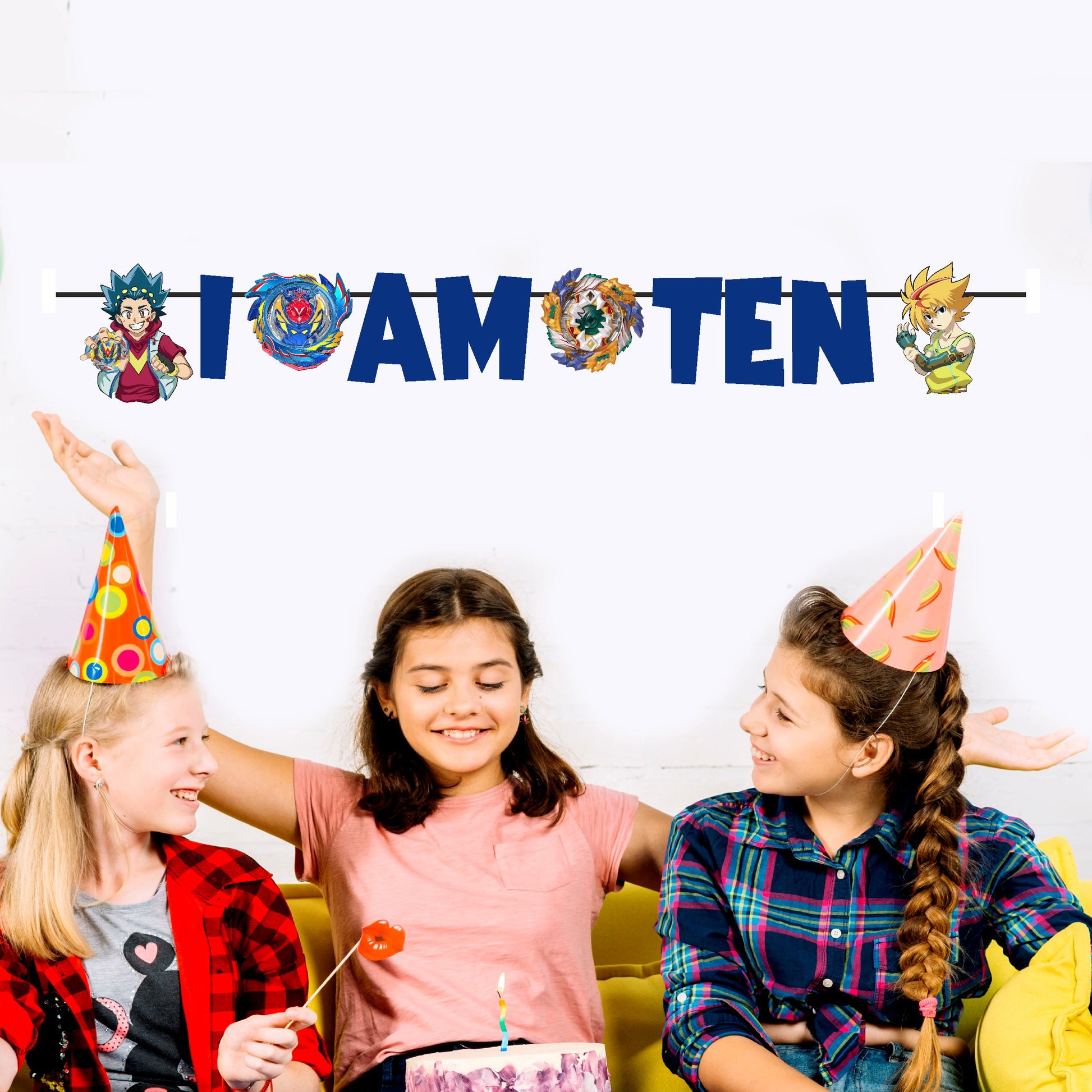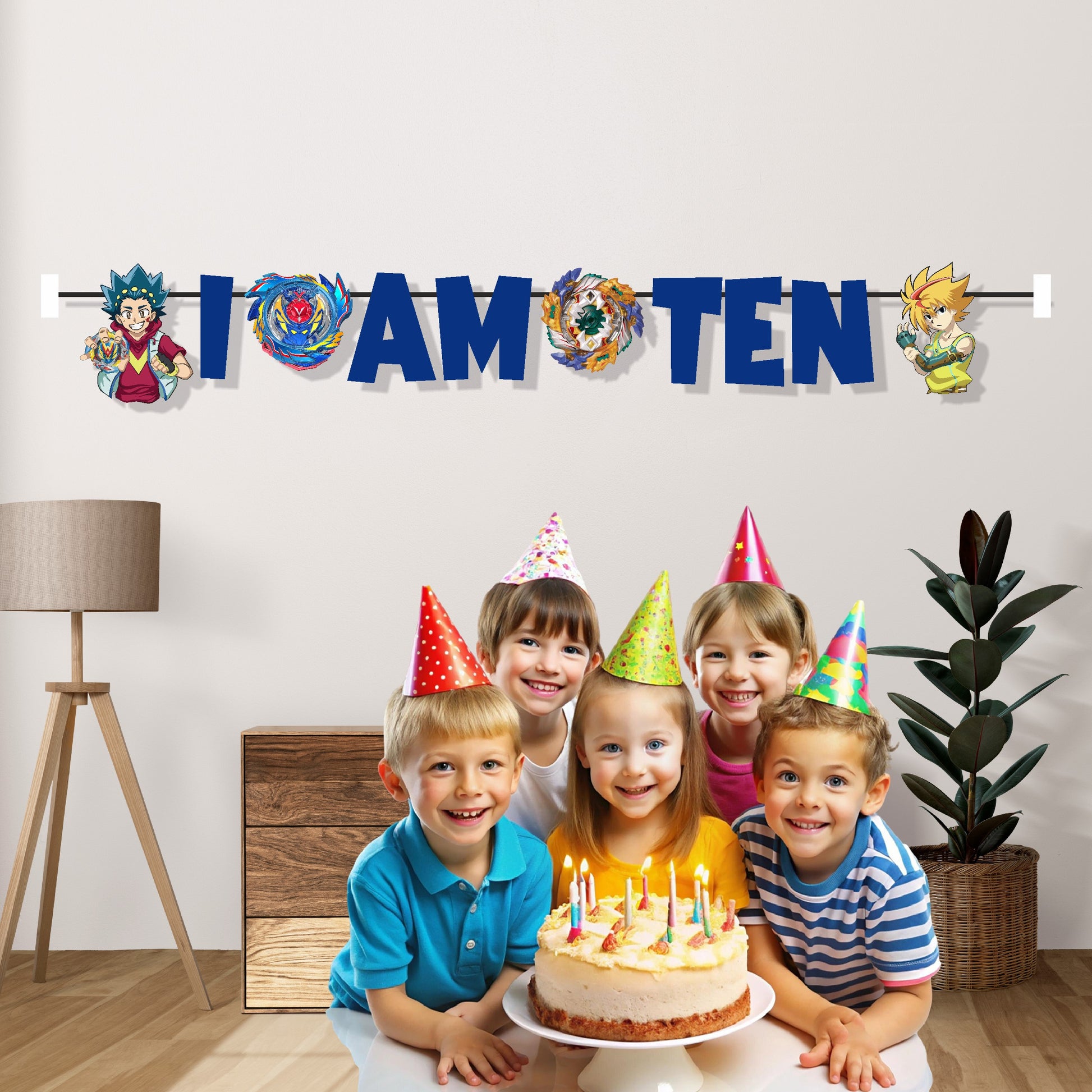 Celebrating another year of spinning power! Our personalized Beyblade Age Bunting is designed with colorful flags featuring powerful Beyblades and dynamic action graphics, proudly displaying the birthday child's new age. It's the perfect decoration to highlight their milestone year and bring high-energy action to the party!
