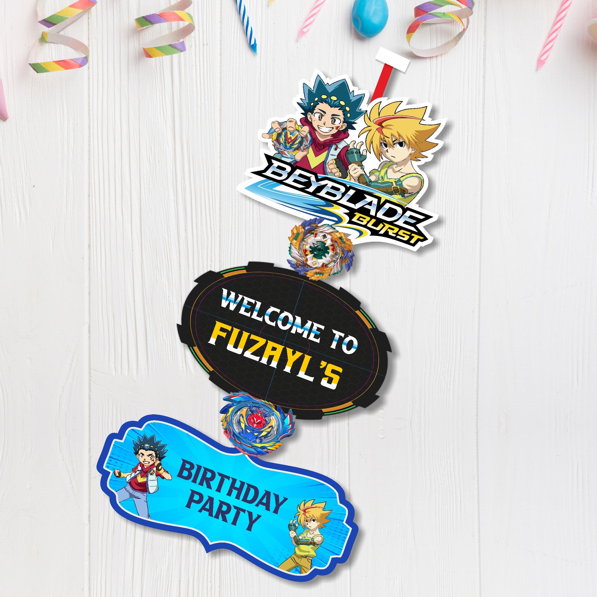 Let it rip! Welcome all Bladers to the ultimate arena! This personalized Beyblade birthday door poster features awesome action graphics of spinning Beys and your favorite characters. It's the perfect way to greet all your party guests and let them know the battle is about to begin. Customize it with your child's name and age!