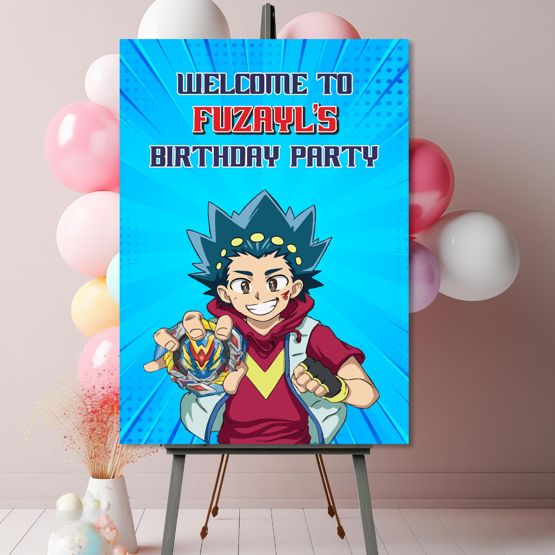 Let it rip! Welcome all Bladers to the ultimate arena! This personalized Beyblade welcome board features awesome action graphics of spinning Beys and your favorite characters. You can customize it with your child's name and age, making it the official entry point to an epic battle celebration!