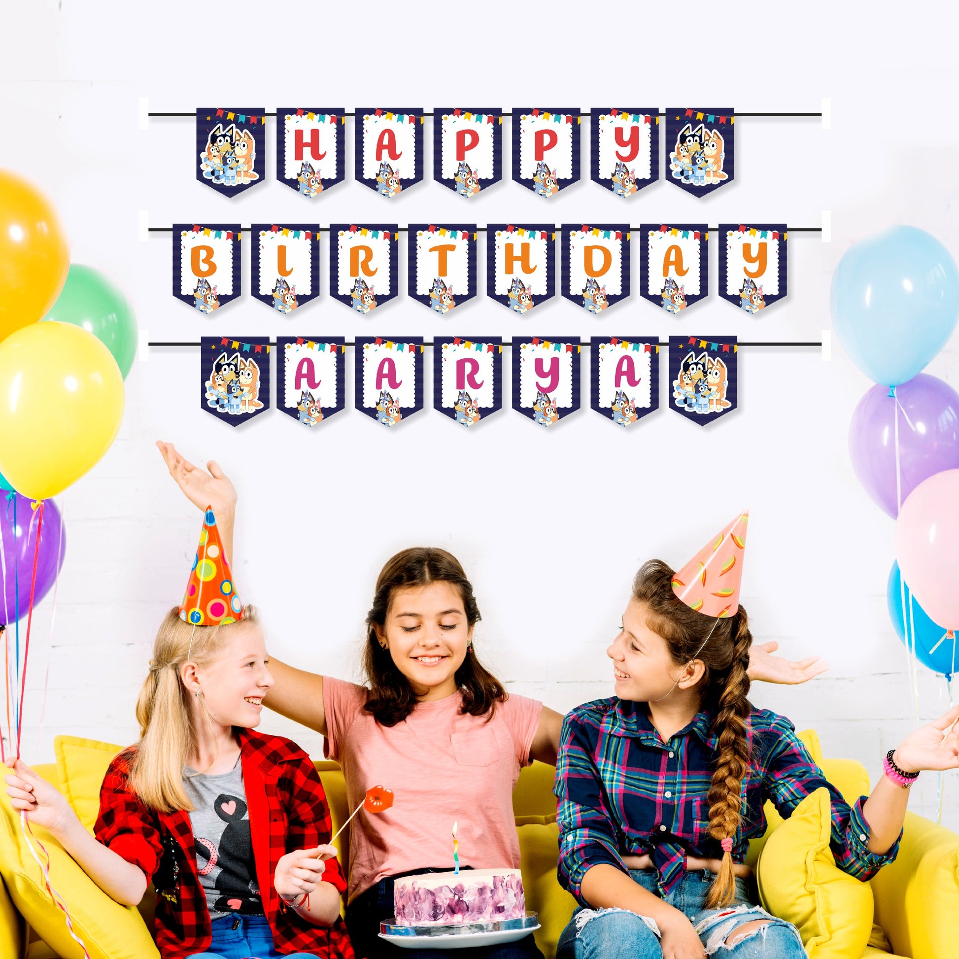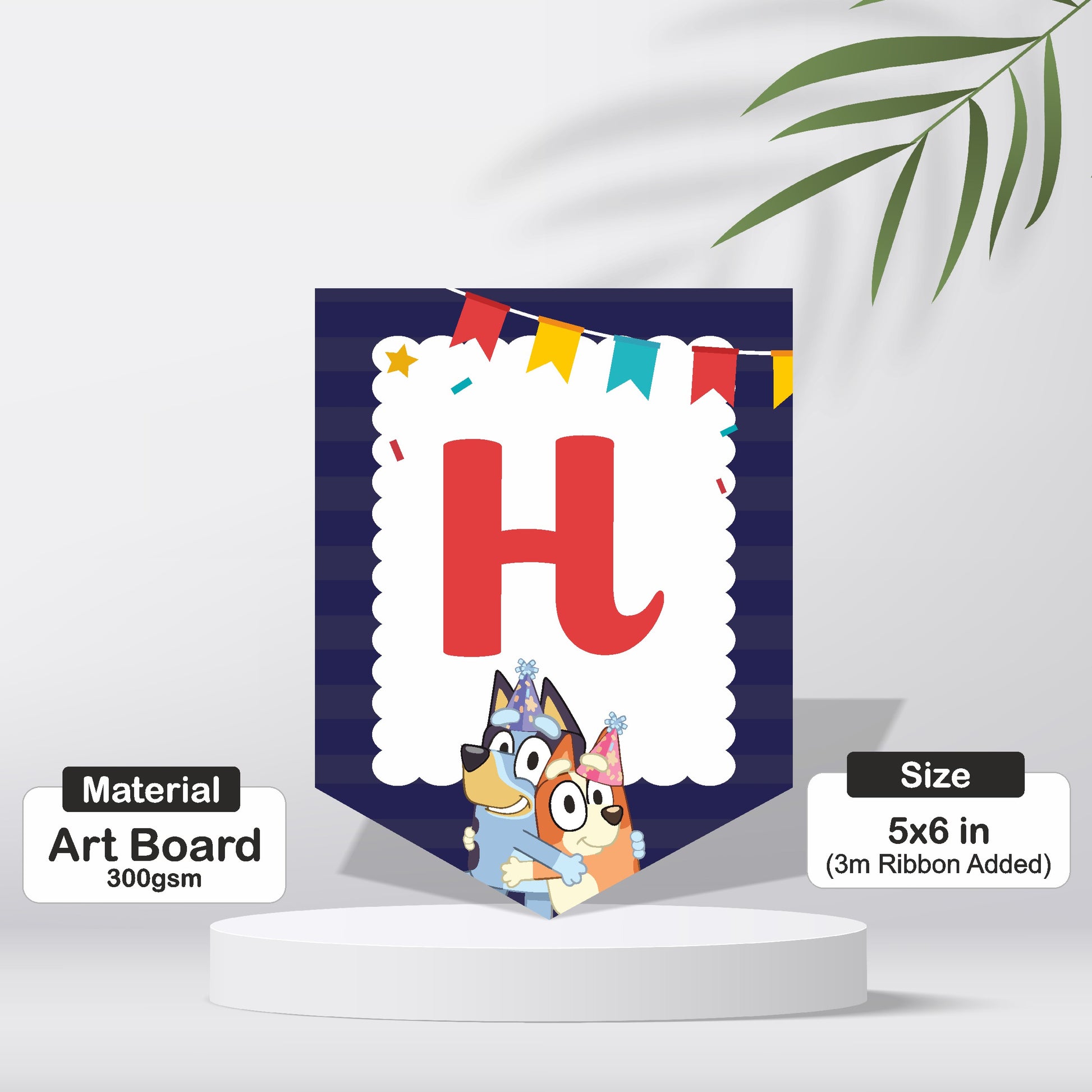 Deck out your party room with our charming Bluey-Themed Custom Name Bunting. Each flag is vividly designed with the beloved characters and colors of the show, coming together to spell the birthday child's name. This beautiful, customized banner is a wonderful focal point for your decoration and a lovely keepsake after the party!