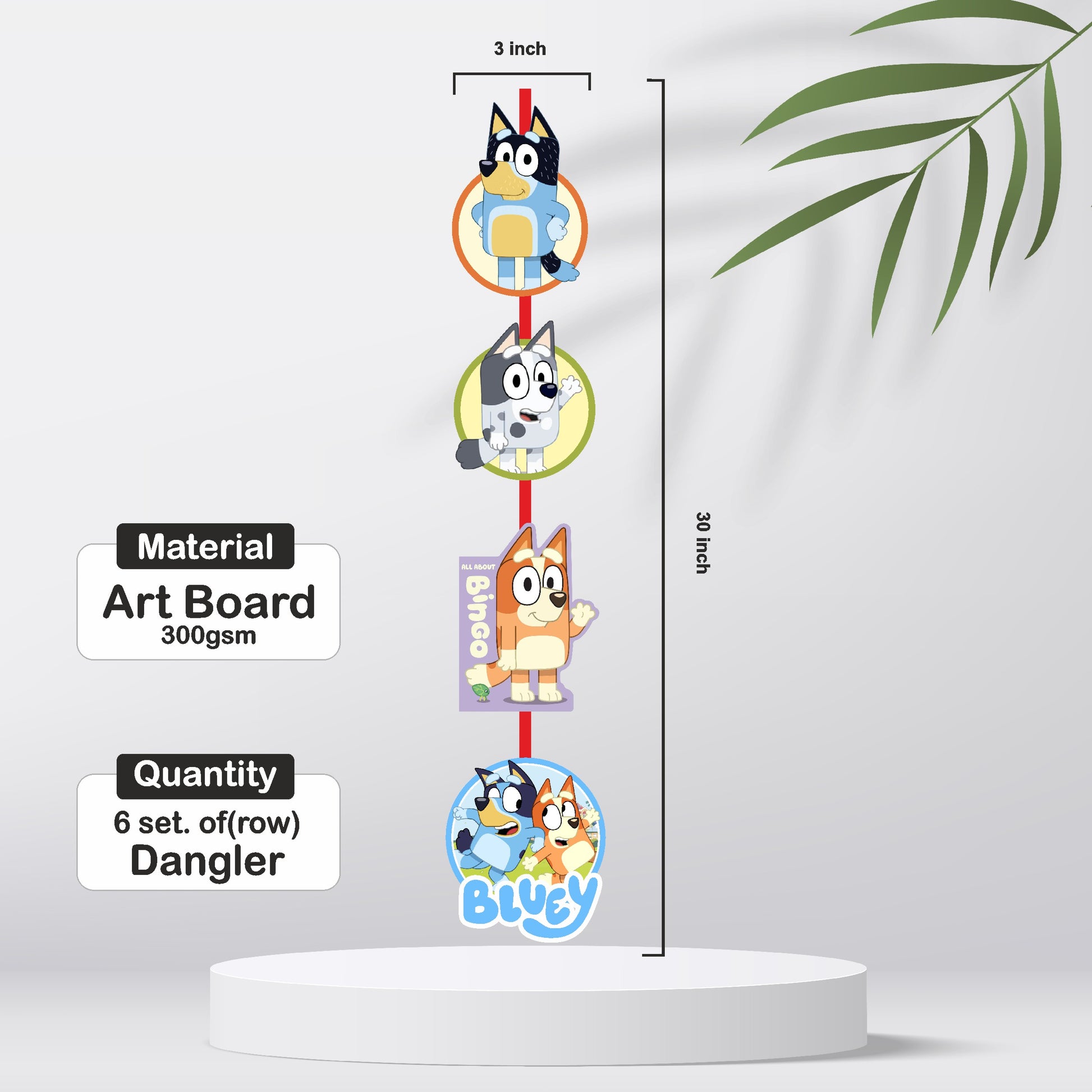 Let the fun hang with our custom Bluey-themed danglers. These vibrant spiral decorations feature personalized cutouts of the beloved Heeler characters. they're a quick and easy way to add a celebratory, customized touch to your decorations. They are an excellent way to create a festive, three-dimensional look for your Bluey-themed celebration!