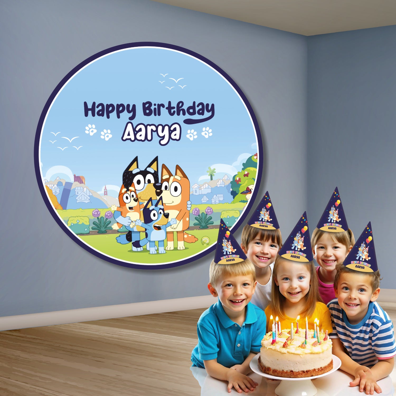 Make their birthday extra special with a custom Bluey-themed banner. This high-quality banner is designed with the iconic Bluey characters and a lively, colorful background. Personalize it with your child's name and age to create a one-of-a-kind decoration that sets the scene for a day of fun and games, making it the perfect way to welcome guests to your little one’s party. You can customize it with your child’s name and age for a special touch. just like in the show!