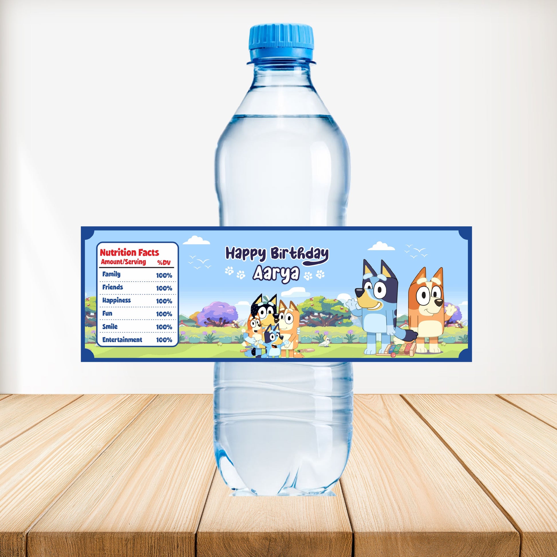 Transform ordinary bottles into fun party props with our custom Bluey-themed water bottle stickers. Each vibrant, high-quality label features the beloved characters from the show and can be personalized with the birthday child's name and age. They're the perfect detail for the refreshment table and a charming keepsake for all your little party guests.