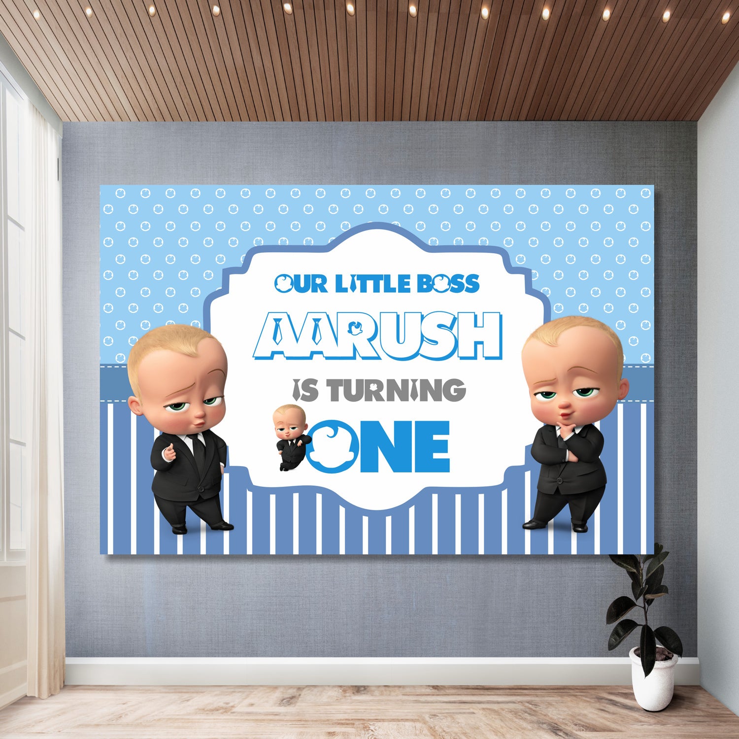 The boss is here! Get ready for a big day with a personalized Boss Baby birthday banner. This banner features the stylish baby in his suit, ready to take over the party. You can customize it with your child's name and age for a truly executive touch.