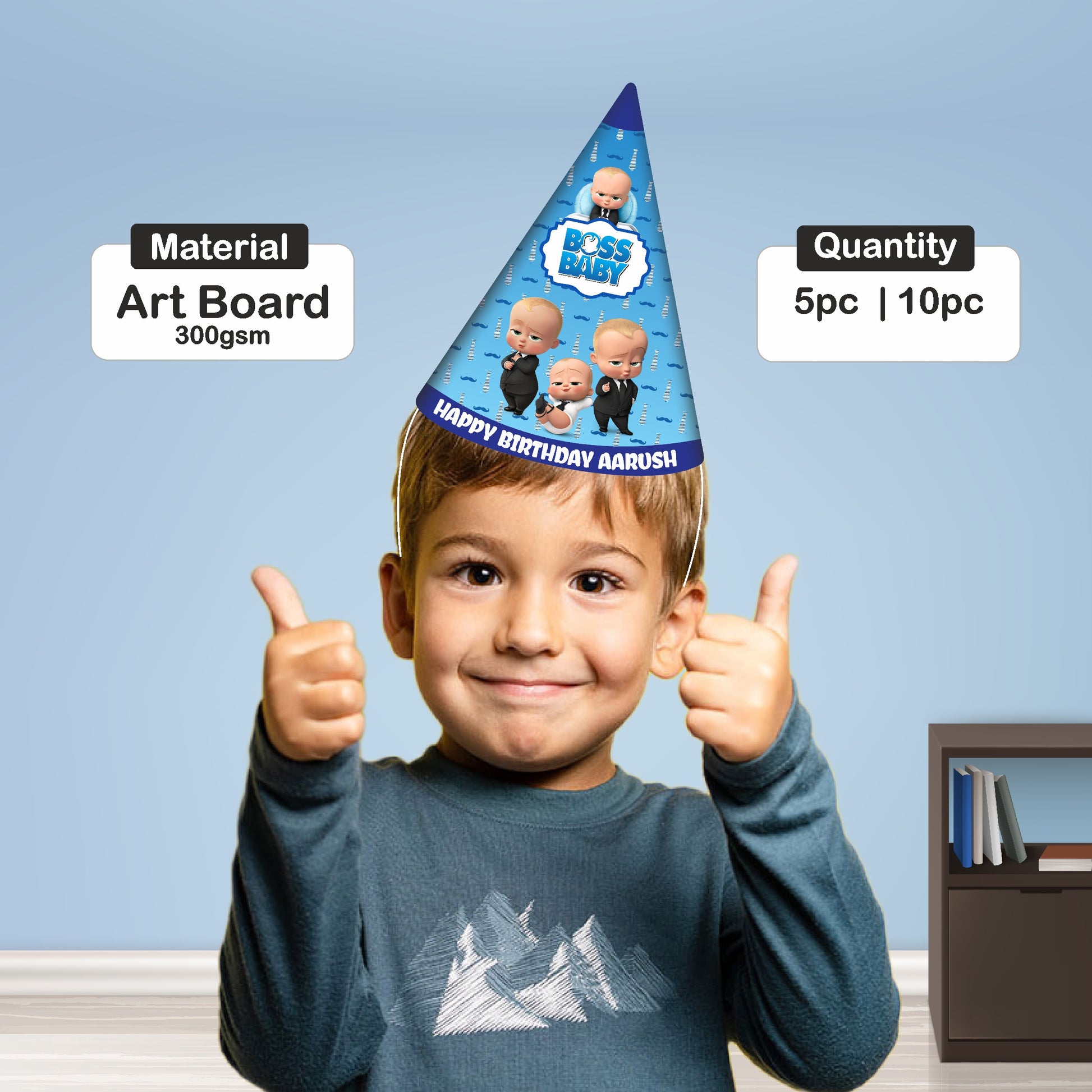 Get ready for an executive-level party with a personalized Boss Baby birthday hat! These fun cone hats feature the Boss Baby in his suit and a funny, corporate-baby design, and can be customized with your child's name or age. They're the perfect accessory to make every little guest feel like a mini-executive ready for business and fun!