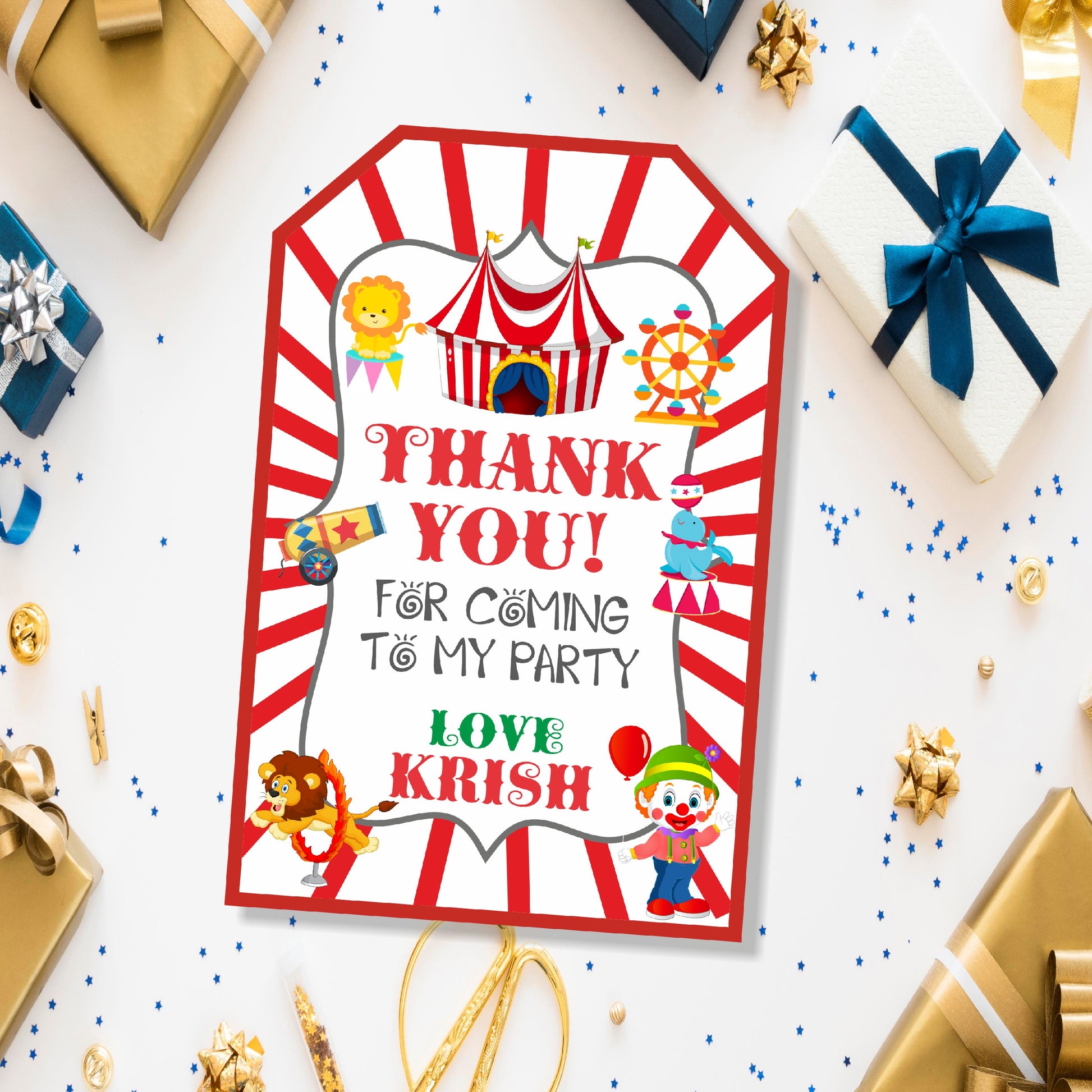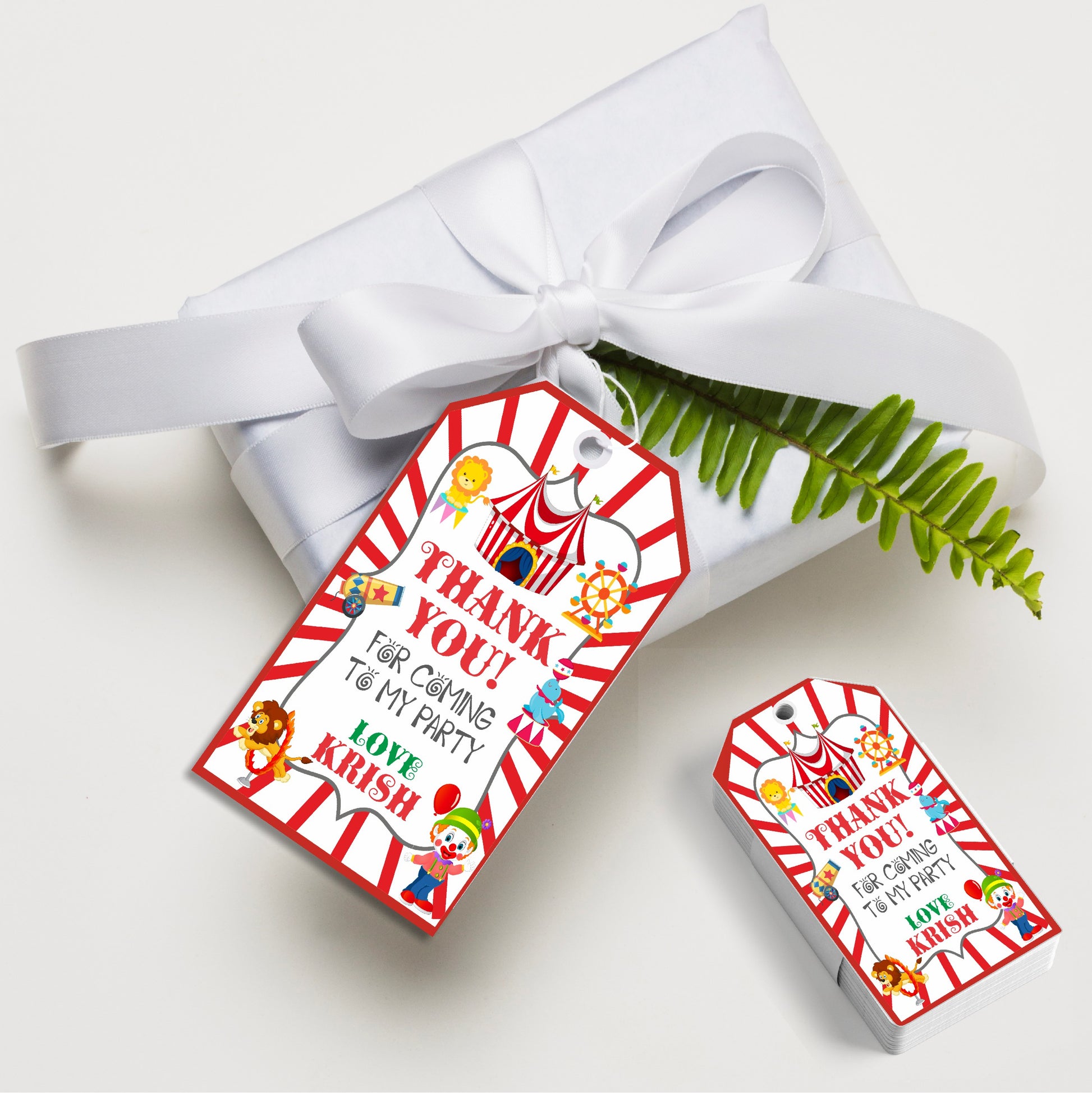 Show appreciation with our Customized Carnival Theme Kids' Birthday Thank You Tags! Featuring bright, playful designs and personalized with your child's name, these tags are perfect for party favours and gifts. Made from durable cardstock, they add a cheerful touch to your celebration. Express gratitude in style with these fun, customized thank you tags for a memorable birthday!