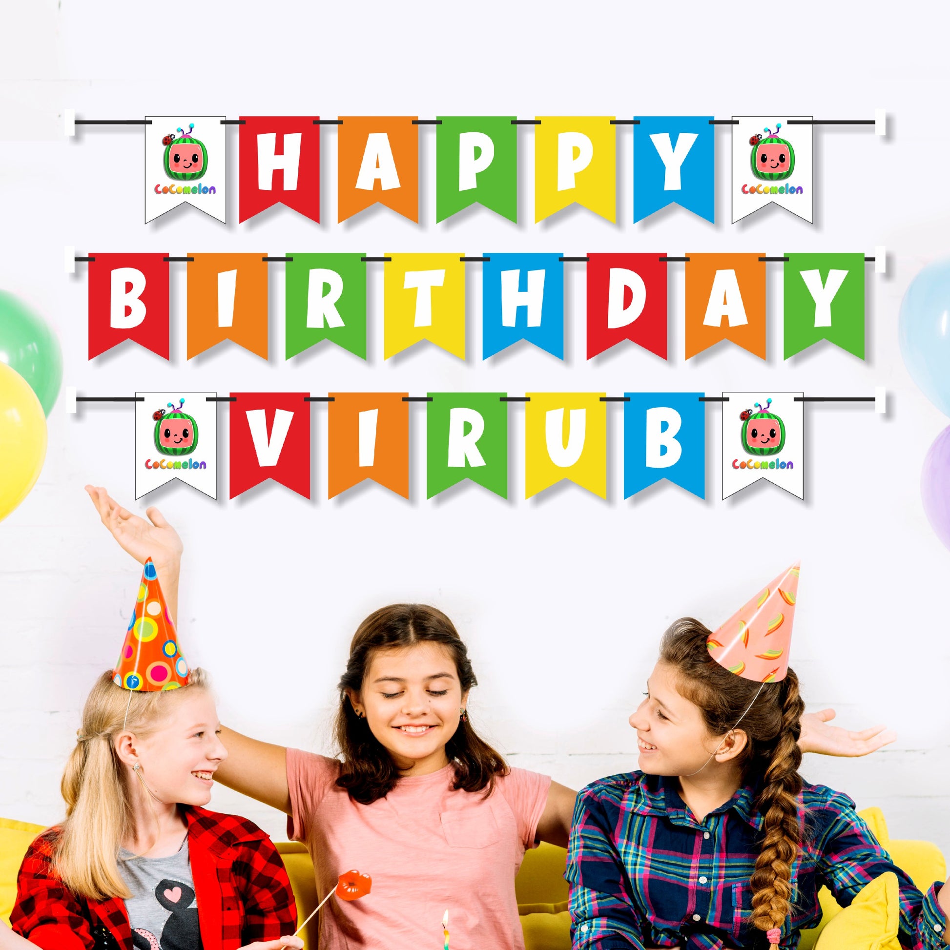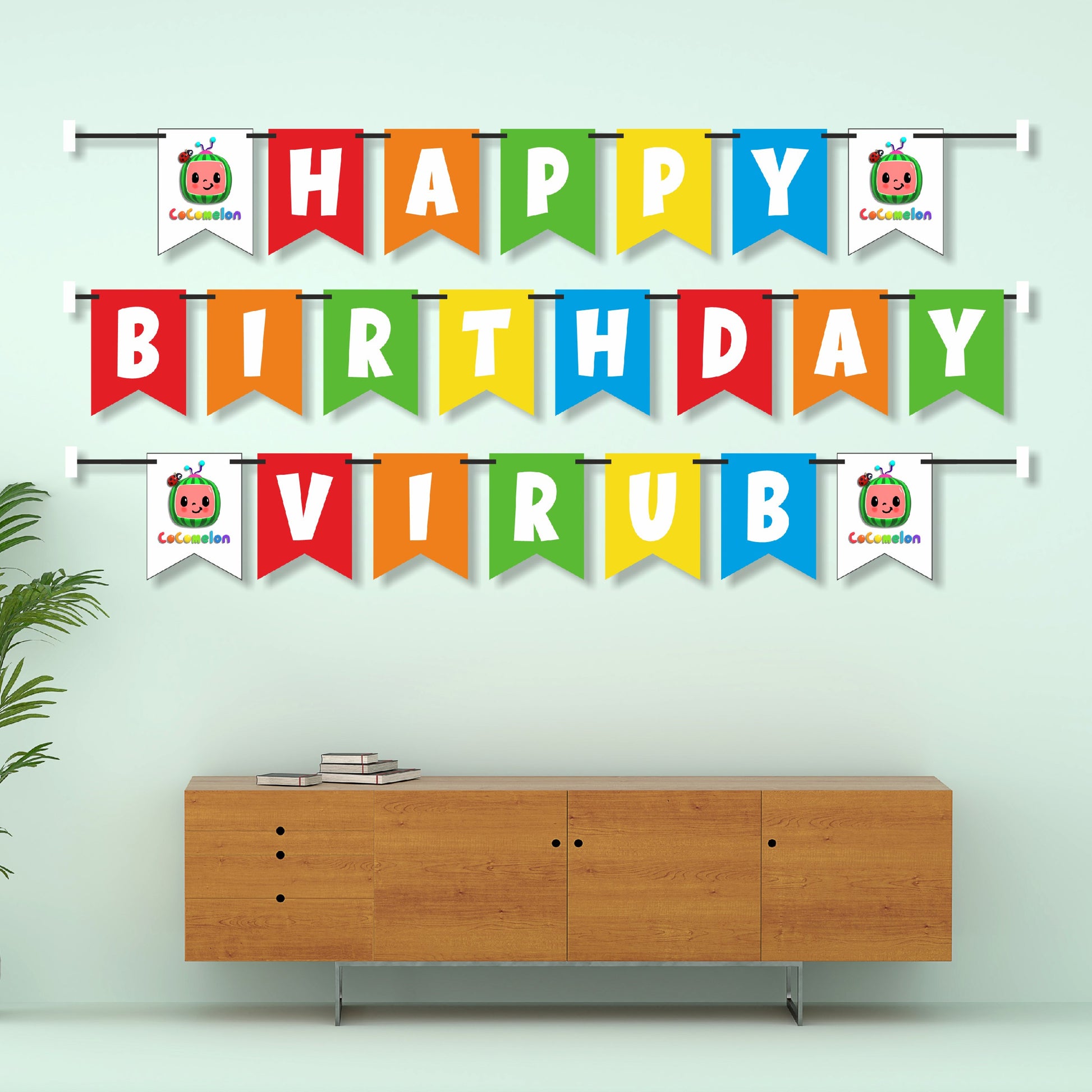 Make the little one feel like the star of the show with a personalized Cocomelon Name Bunting! This adorable banner features vibrant flags with JJ and his friends alongside colorful graphics, perfectly spelling out your child's name. It's the ultimate decoration to bring the joy and music of the show right to your party!