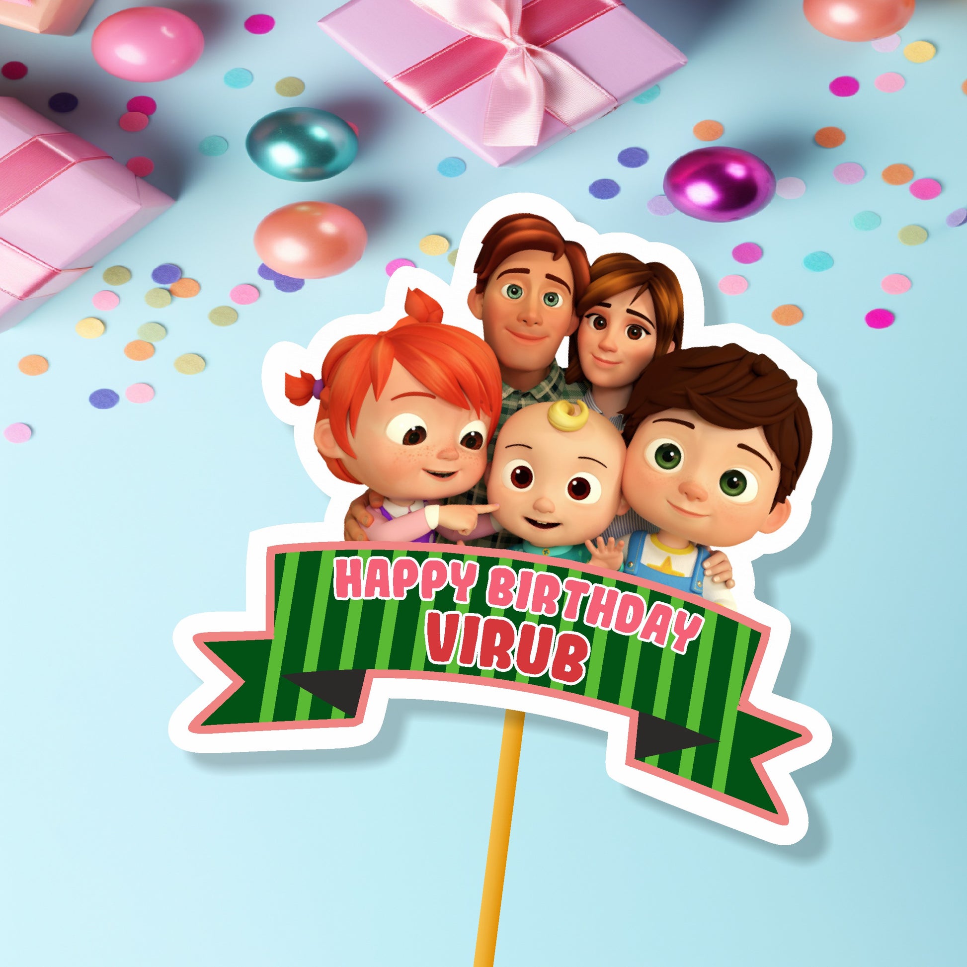 Make the birthday cake the centerpiece of the sing-along with our custom Cocomelon cake topper. This vibrant topper is designed with the beloved characters and iconic elements like the school bus or logo. It can be personalized with the birthday child's name, age, or a cheerful "Happy Birthday" message. It's an adorable decoration that transforms a simple cake into a colorful, joyful scene!