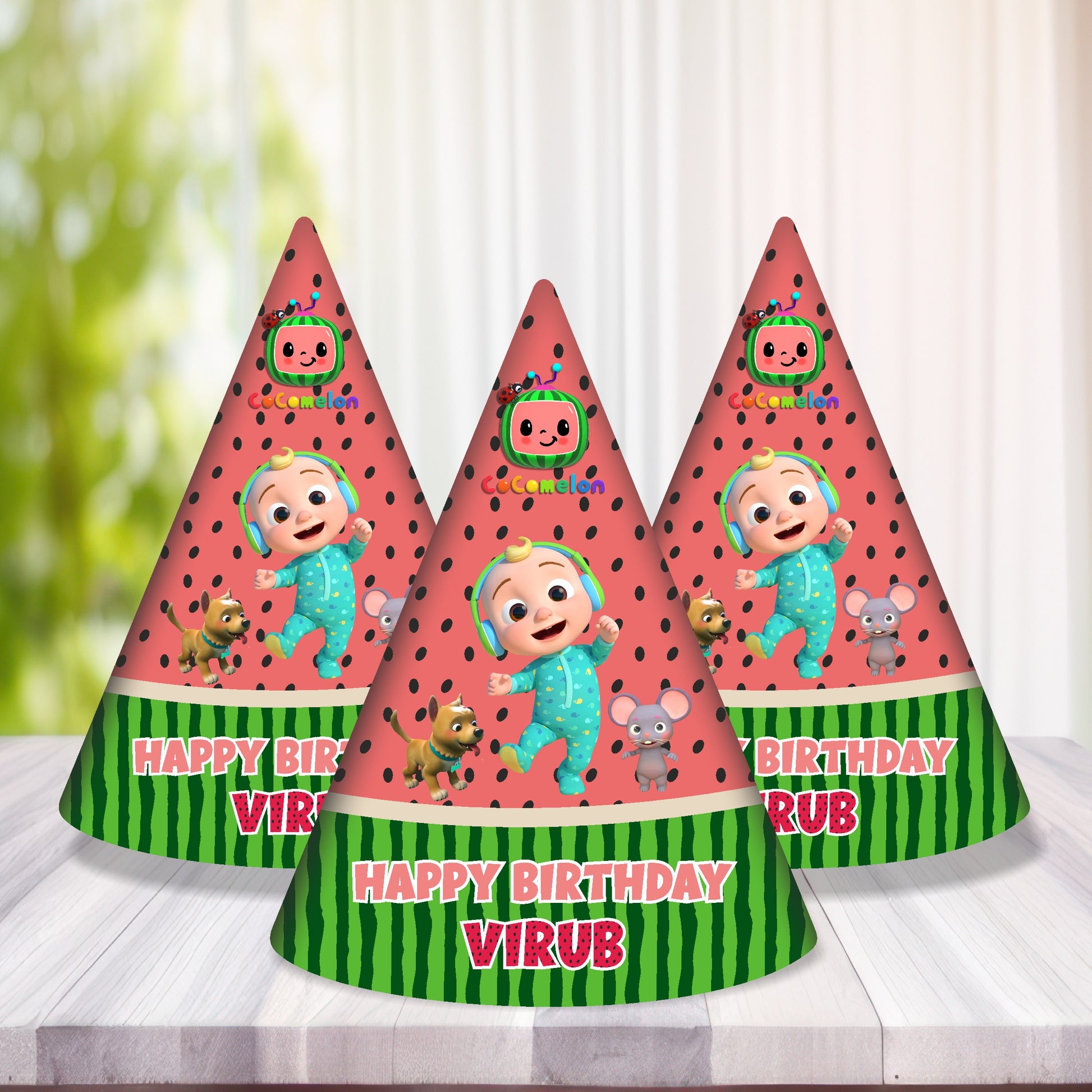 Get ready to sing and celebrate with a personalized Cocomelon birthday hat! These fun cone hats feature adorable graphics of JJ and his friends and can be customized with your child's name or age. They're the perfect accessory to make every little guest feel like part of the Cocomelon crew and ready for a musical party!