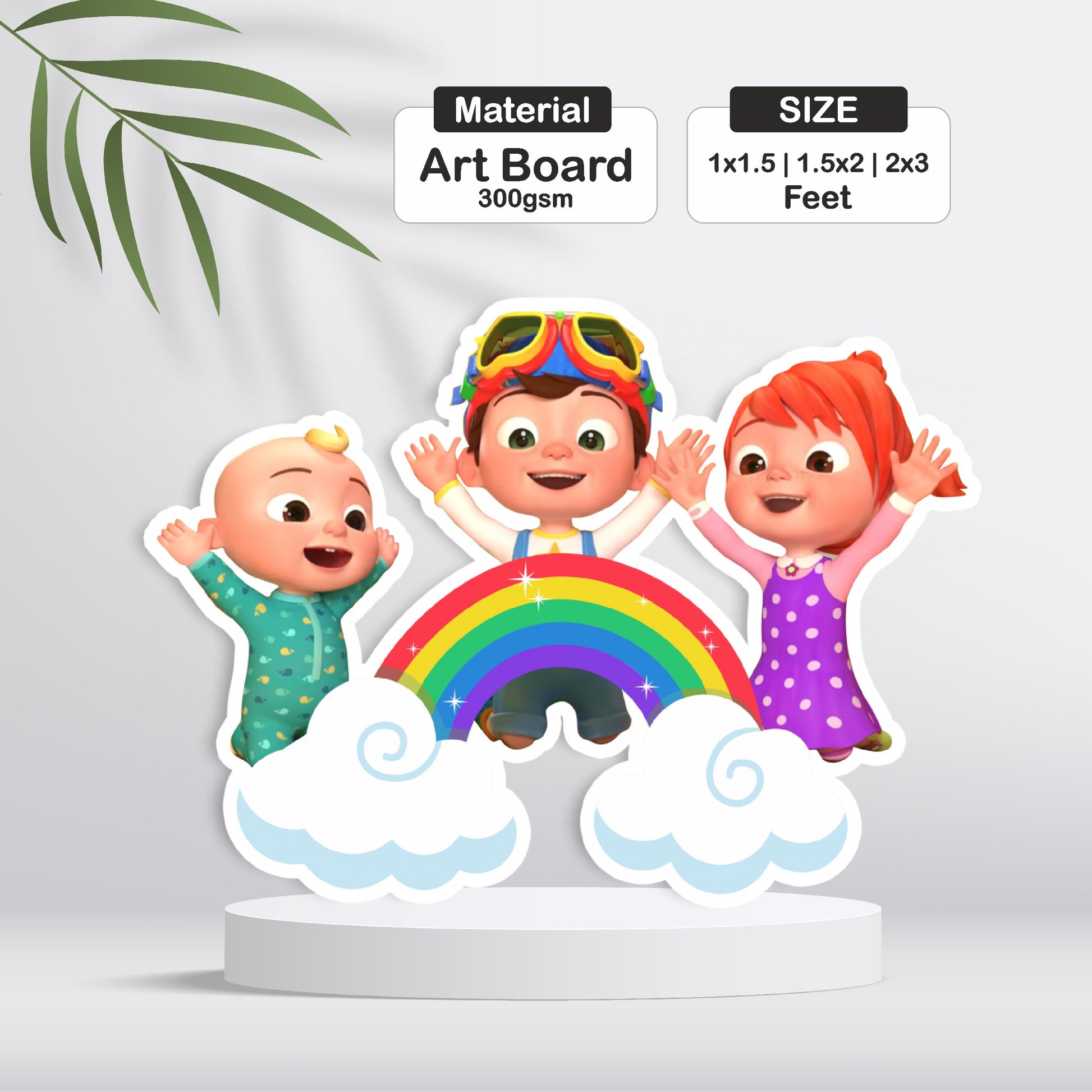 It's a Cocomelon Party! Bring all the beloved characters to life with personalized Cocomelon cutouts! These custom props feature JJ, YoYo, TomTom, Cody, Nina, and all their animal friends. They're perfect for decorating walls, setting up an adorable photo opportunity, or placing on tables for an extra dose of Cocomelon charm!