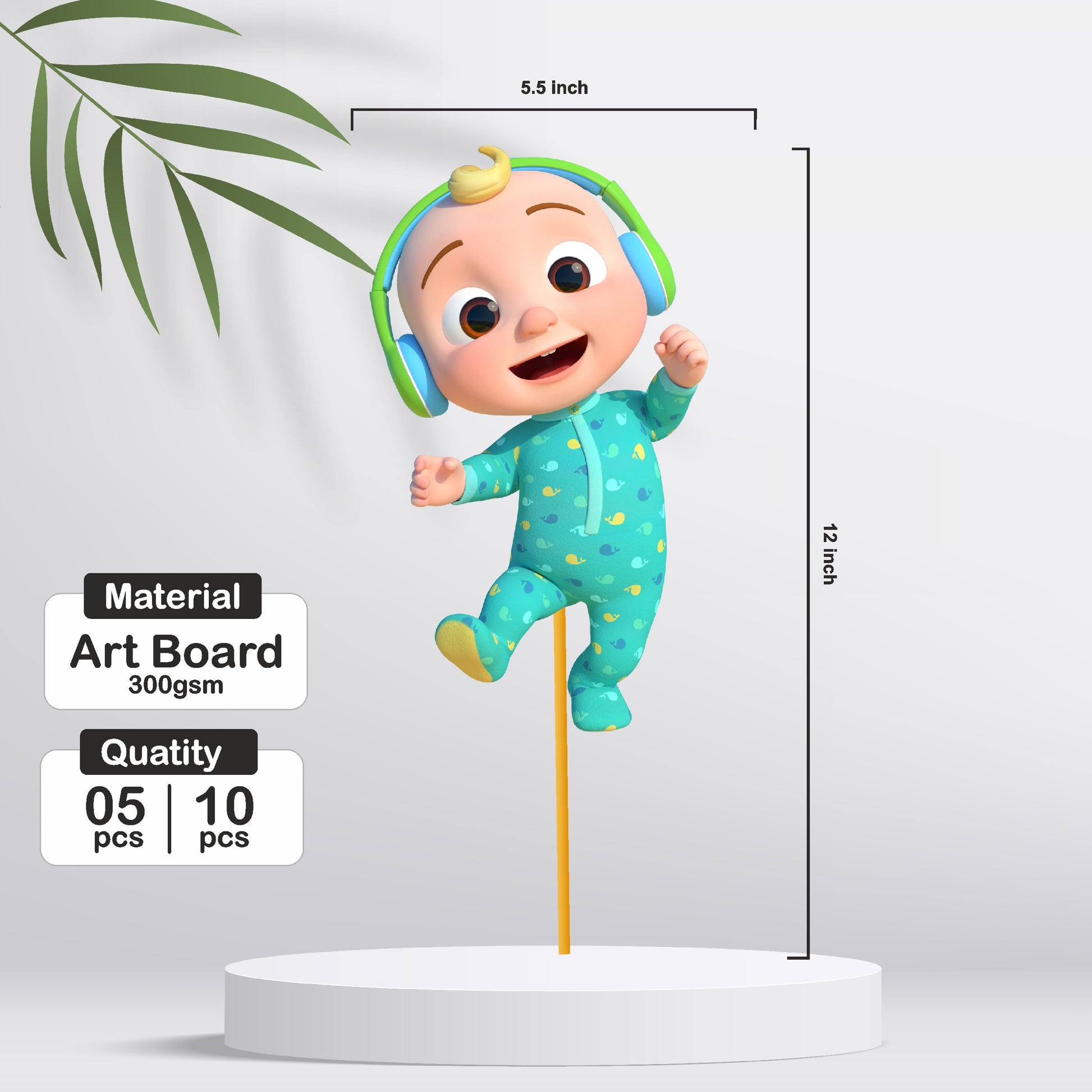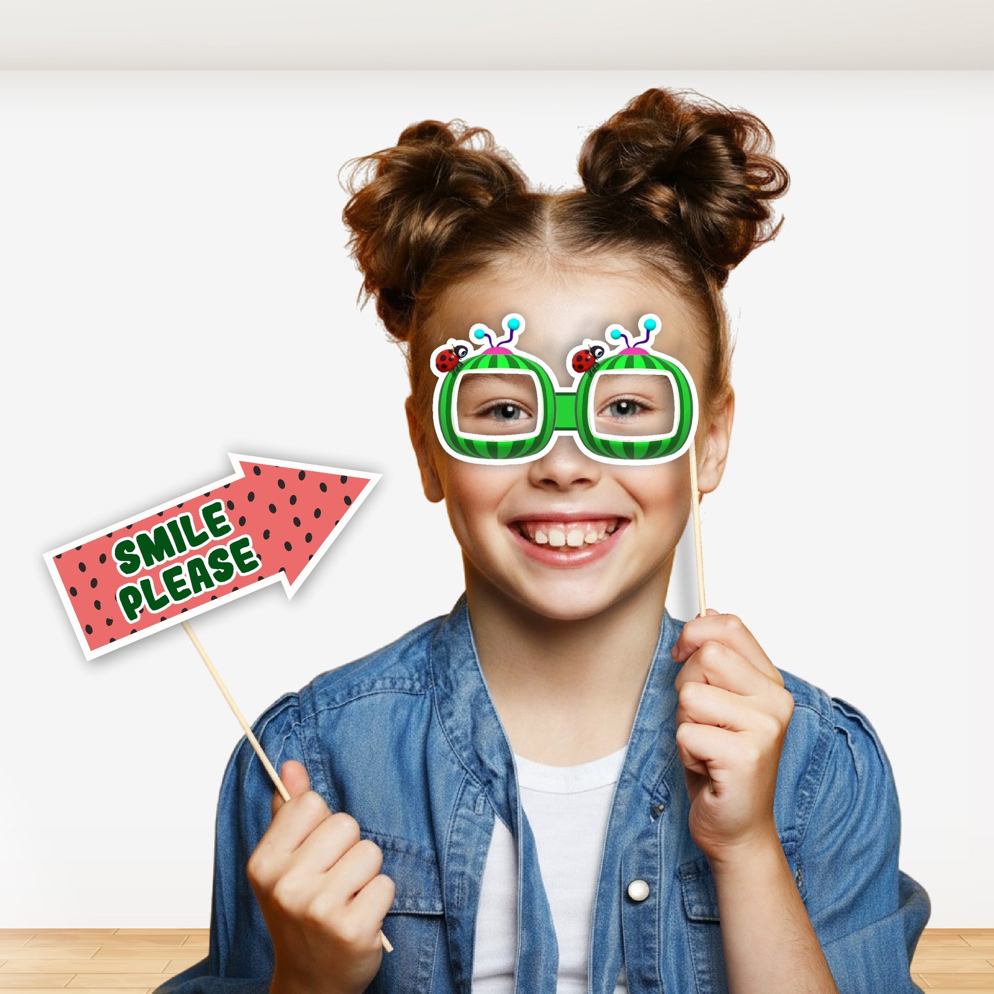 Time for a happy, singing photo session! Our personalized Cocomelon photo booth props are the ultimate addition to any party. The set includes a variety of adorable, custom cutouts like JJ's iconic shirt, the Cocomelon logo, colorful animals, and speech bubbles with fun phrases like "Sing Along!" They're a super fun way to capture memorable, cheerful moments with all the little party guests