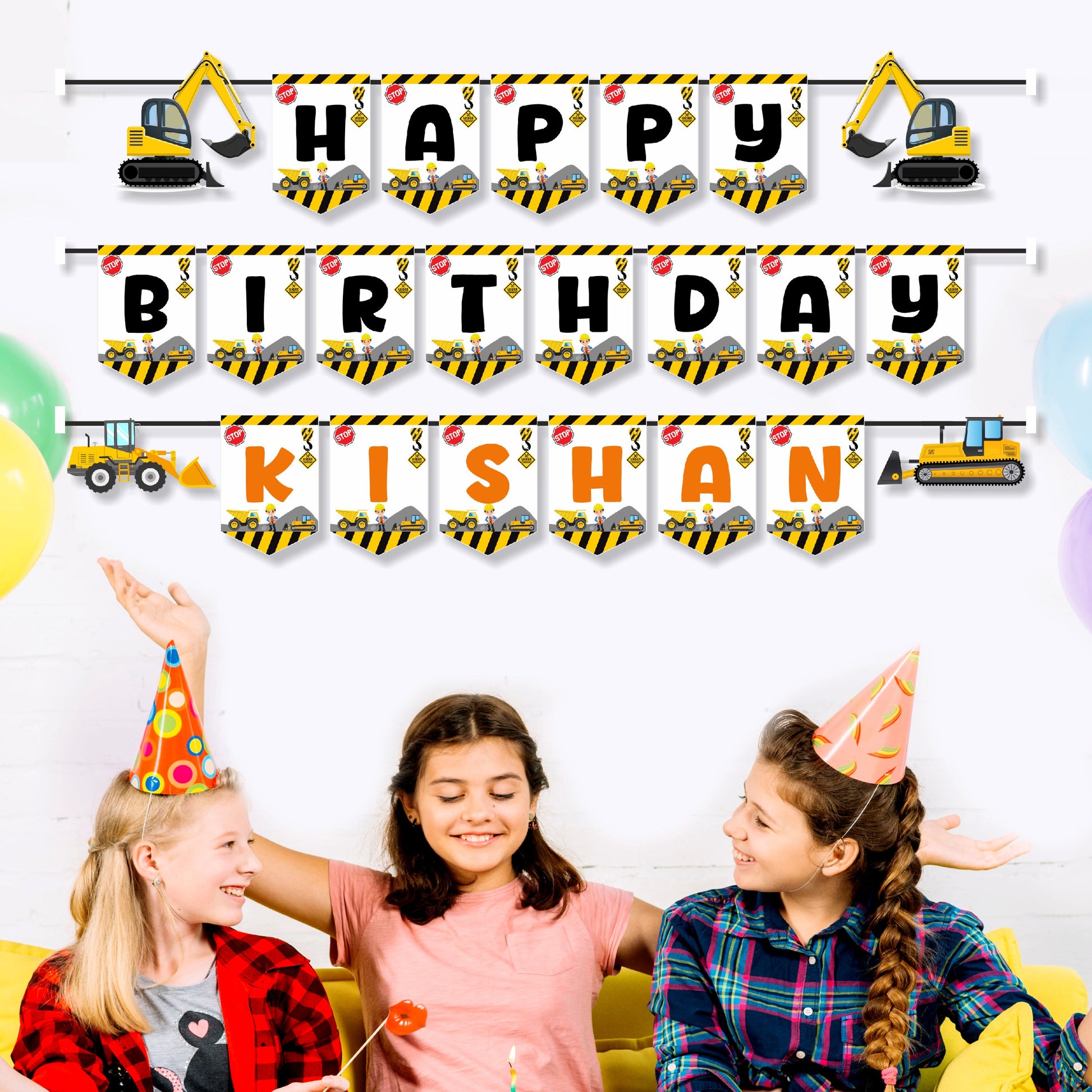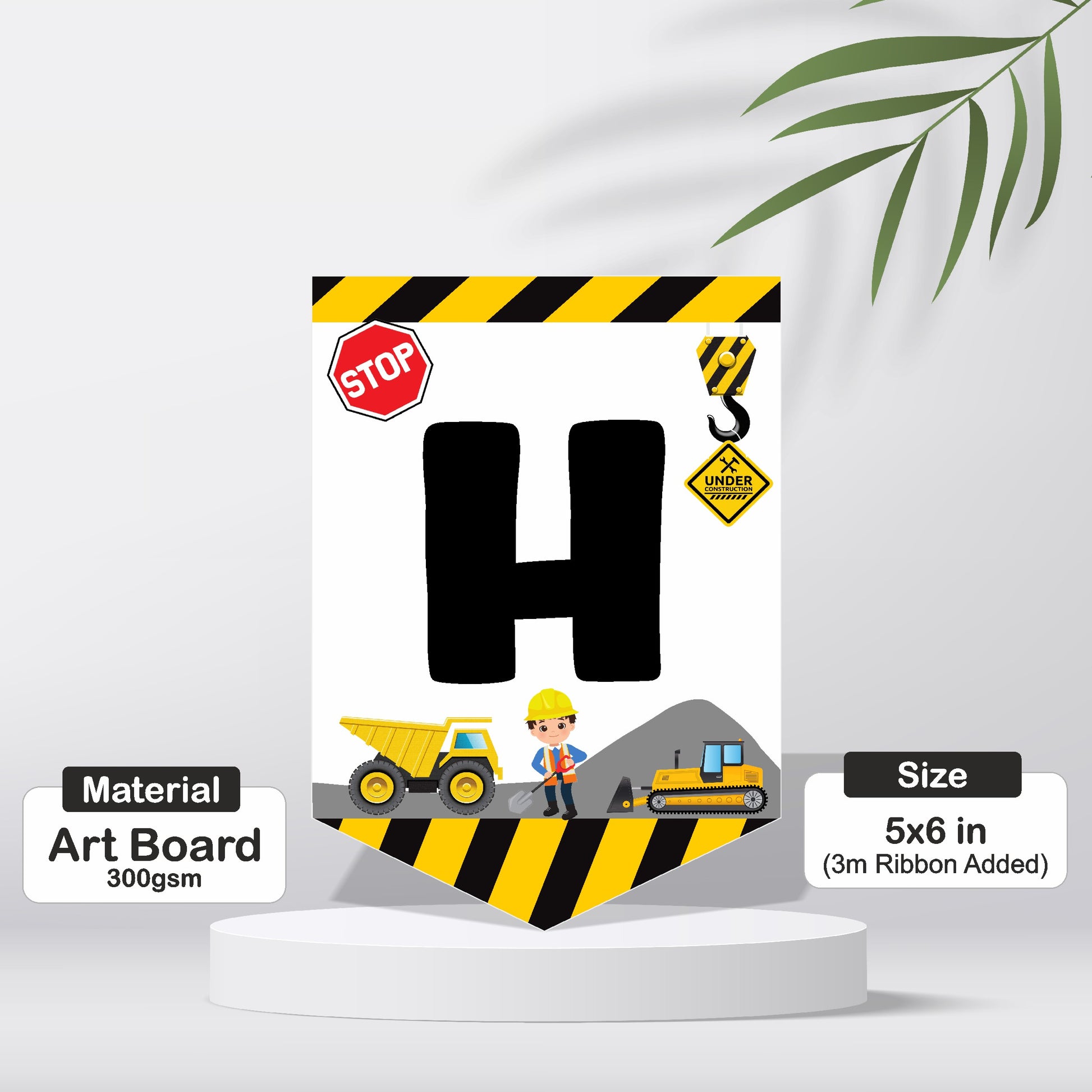 Give your party a signature look with premium construction birthday theme name bunting. Designed to match all your construction theme decoration items. High-quality prints featuring trucks and cranes for construction birthday party decorations. Get unique construction birthday supplies today!