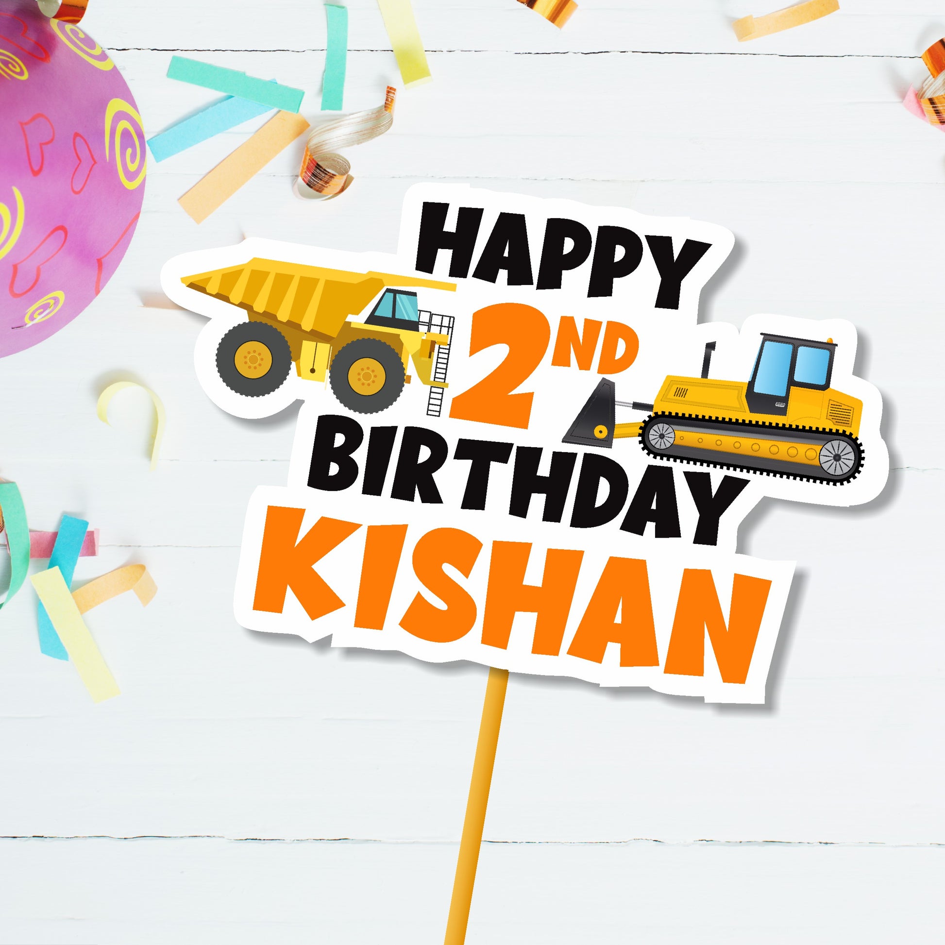 Elevate your dessert table with a premium construction birthday theme cake topper. Perfectly complements all your construction theme decoration items. Vibrant and sturdy designs, essential for professional-looking construction birthday party decorations. Get unique construction birthday supplies today!