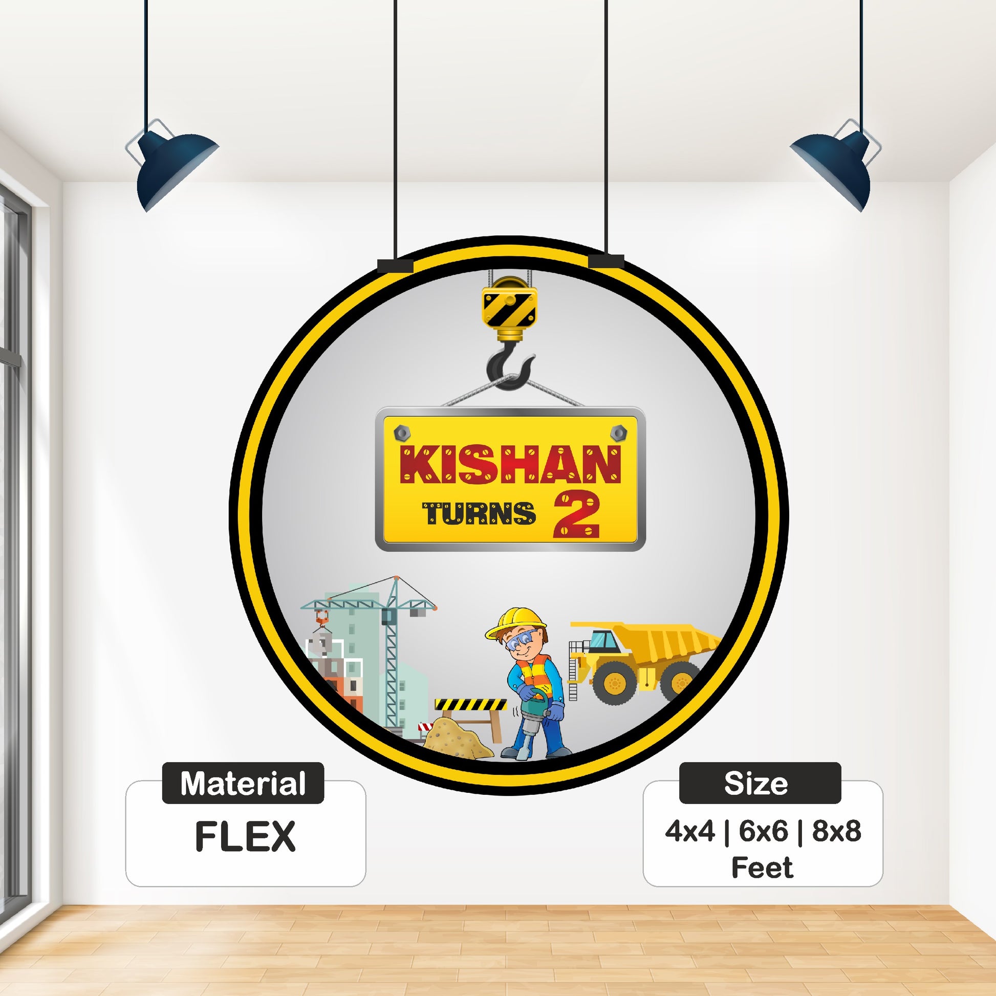 Welcome to the ultimate construction site! Our custom Construction-Themed Round Banner is designed with bold black and yellow hazard tape stripes, gritty textures, and heavy-duty machinery. This high-quality banner is fully personalized with your child's name and their age (or a special "Crew Chief" title). It's the perfect statement piece to transform your party space into a bustling, action-packed build site!