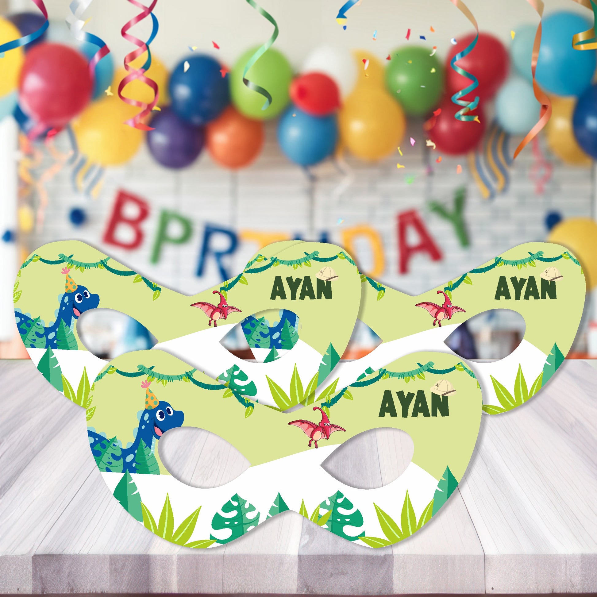 Make your child's birthday extra fun with our Dinosaur Theme Customized Eyemask! Perfect for party activities or photos, this playful mask features adorable dinosaur designs and can be personalized with your child's name. Made from comfortable, lightweight materials, it’s ideal for kids to wear during celebrations or dress-up games. Add a unique, personalized touch to the party and let your little dino fan shine with this fun custom eyemask!