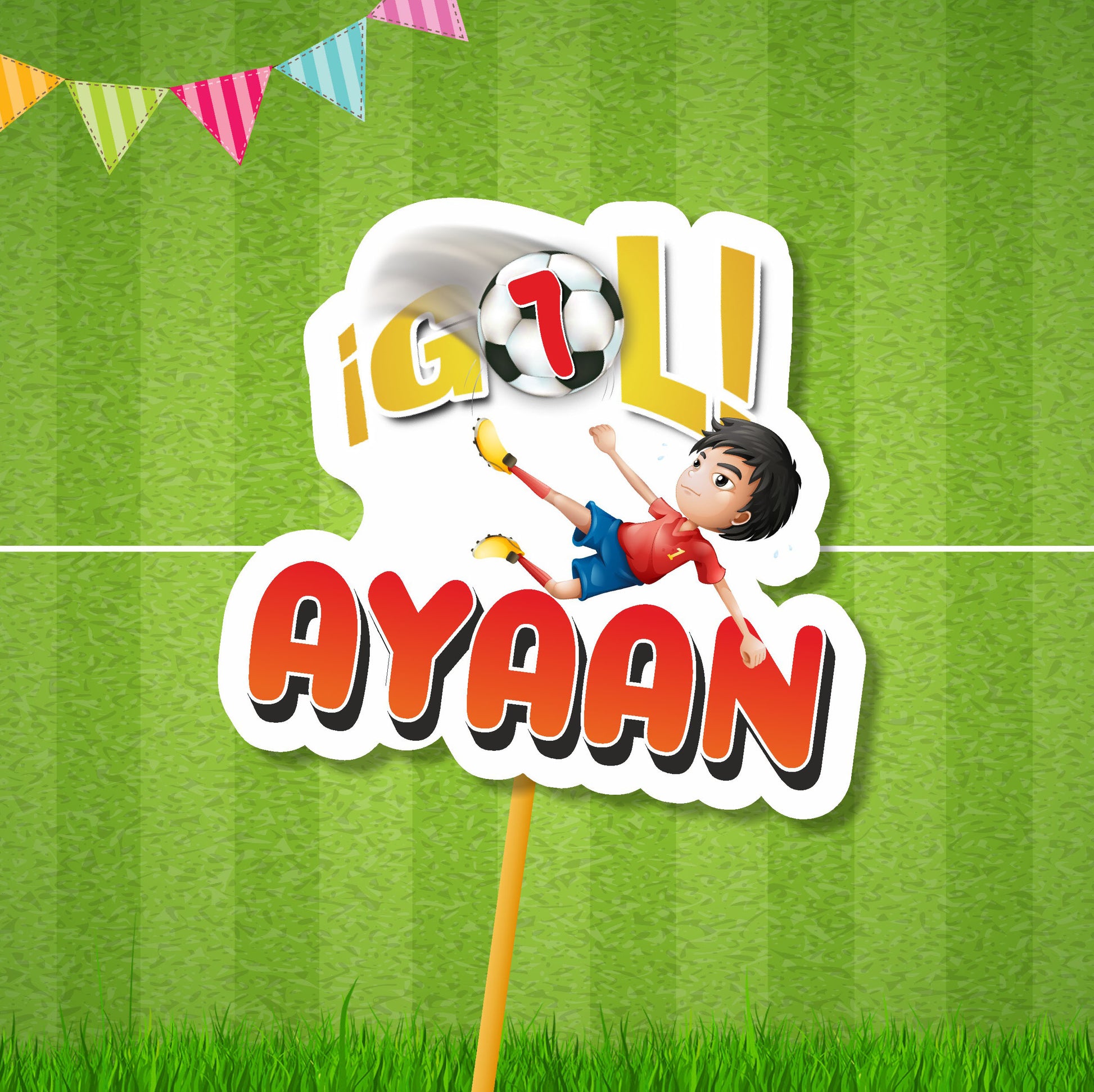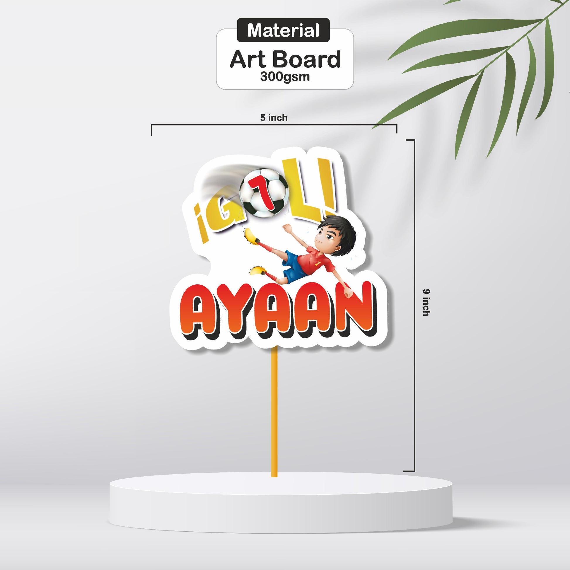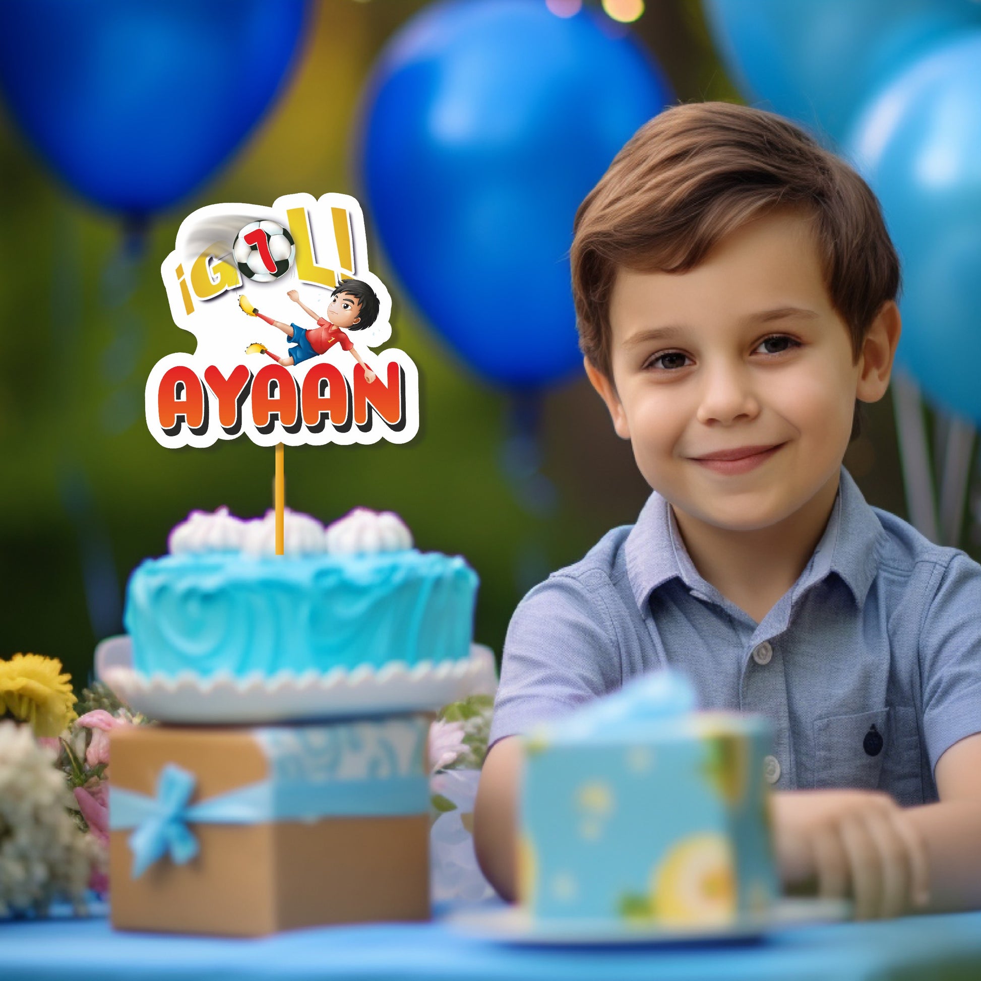 Score the winning goal at your child's birthday party with this custom-made Football themed cake topper. Designed to be the centrepiece of any celebration, this topper is a must-have for every young sports fan.