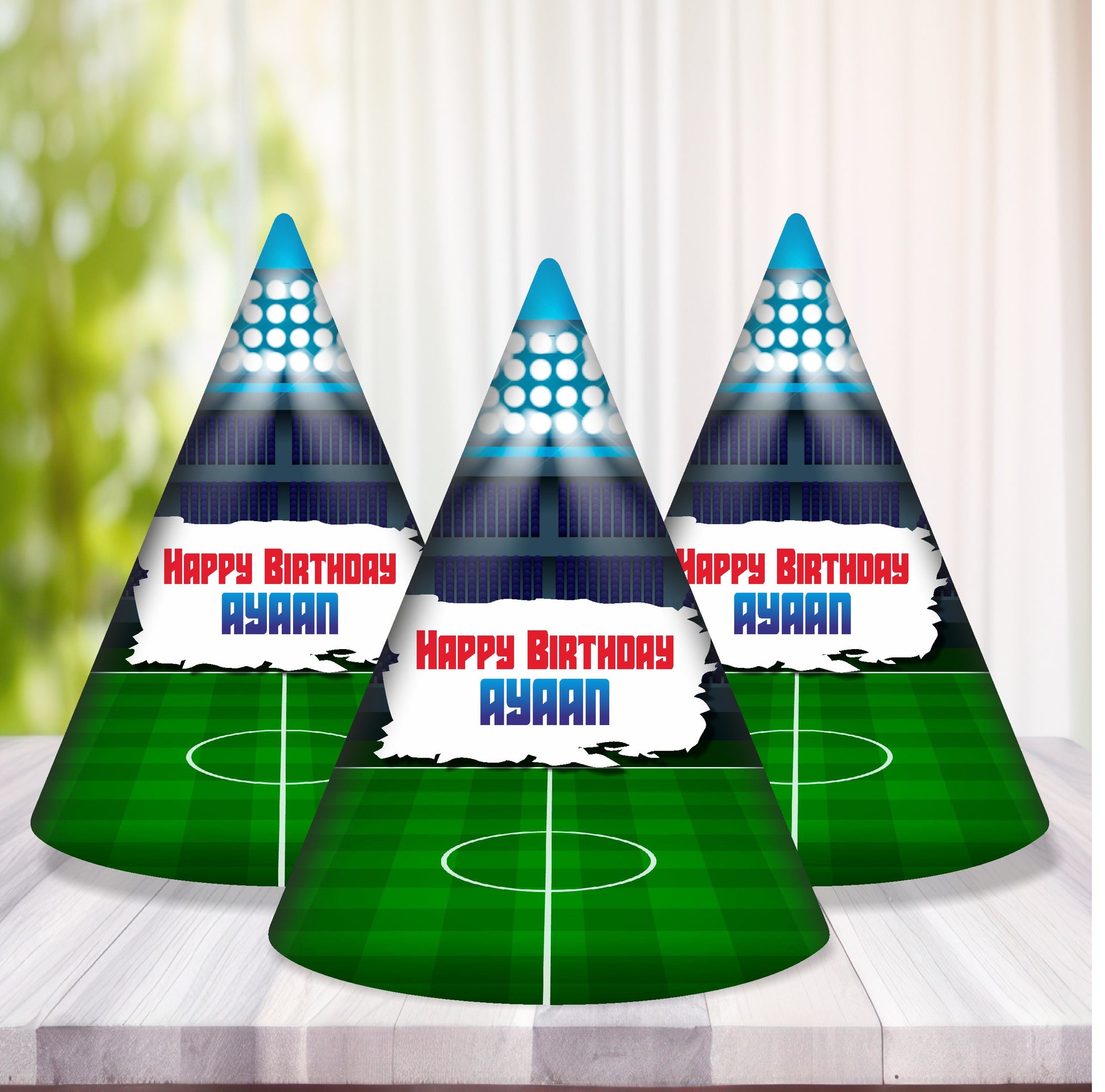 Crown your birthday star—and their whole team of guests—with these fully customised, Football-themed party hats! These hats are designed to add instant team spirit and a special personal touch to any football party celebration