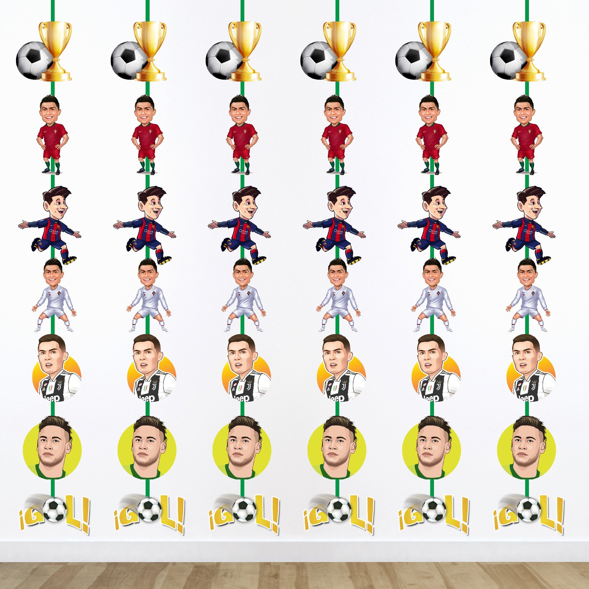 The Ball is in Play! Our personalized Football Danglers add dynamic movement to your party ceiling! These fun decorations feature metallic foil swirls in classic team colors (like green and white), suspending lightweight cutouts of football helmets, footballs in motion, and referee whistles. They are the perfect way to add a high-energy, sporty atmosphere overhead, simulating the excitement of the game!