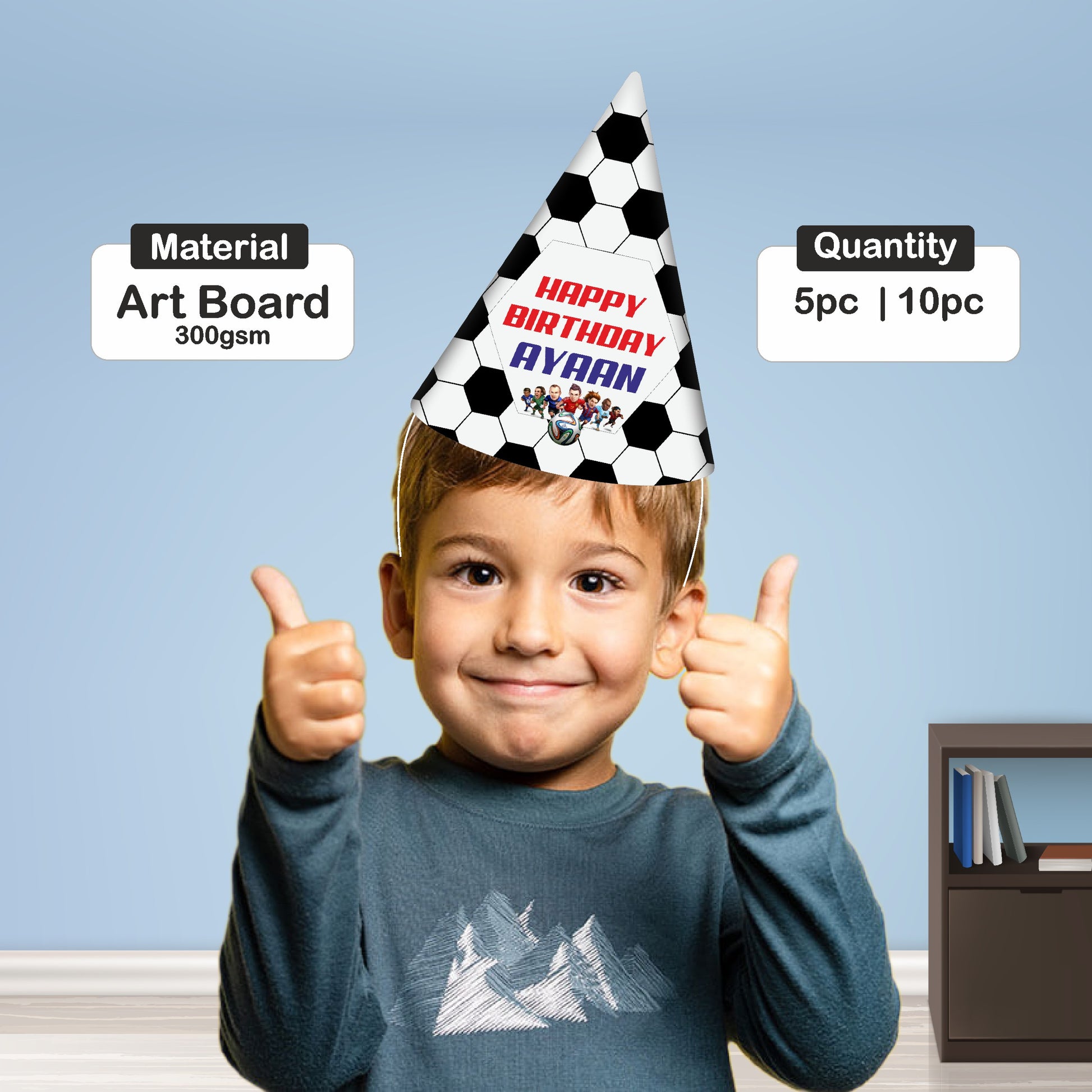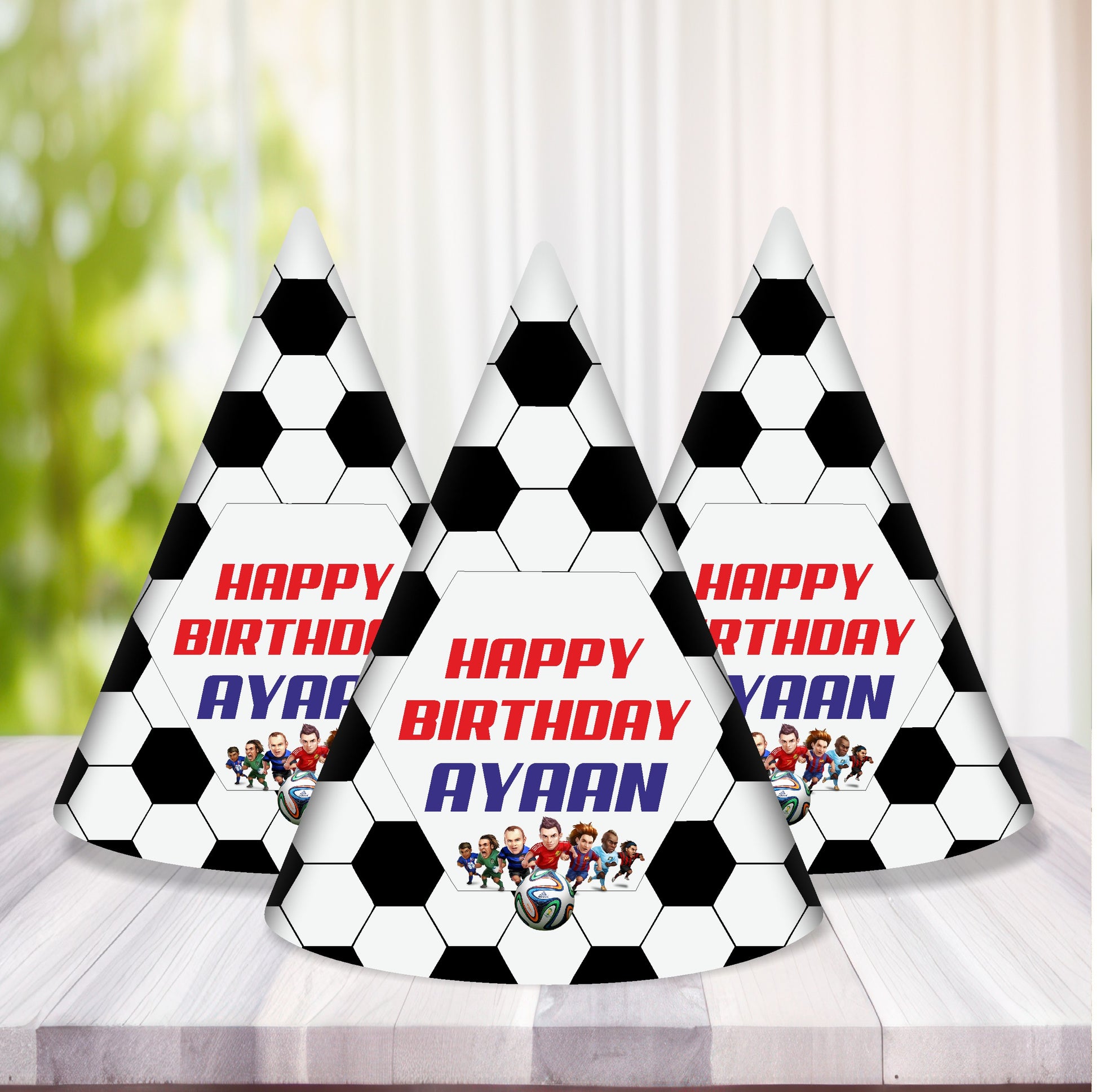 Crown your birthday star—and their whole team of guests—with these fully customised, Football-themed party hats! These hats are designed to add instant team spirit and a special personal touch to any football party celebration