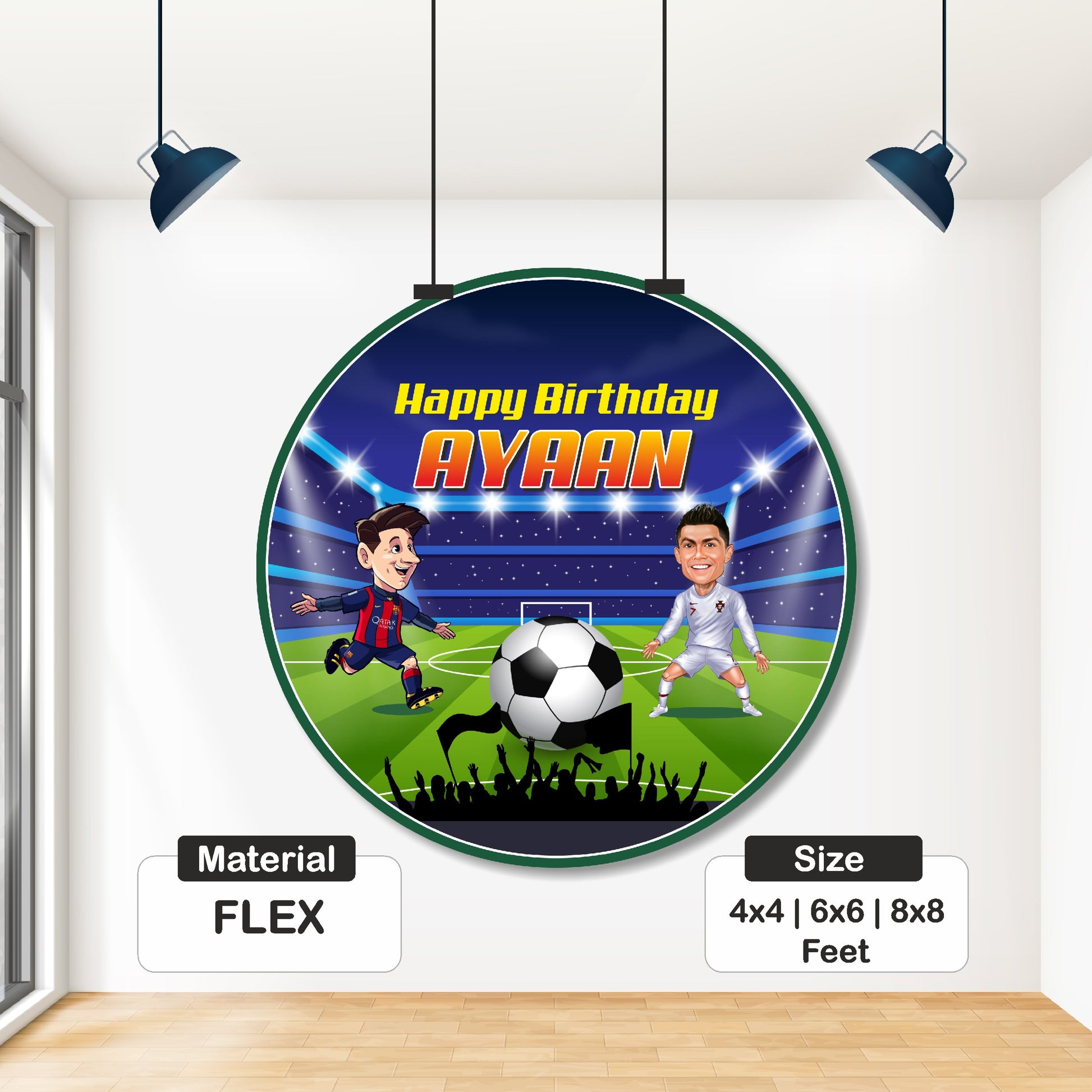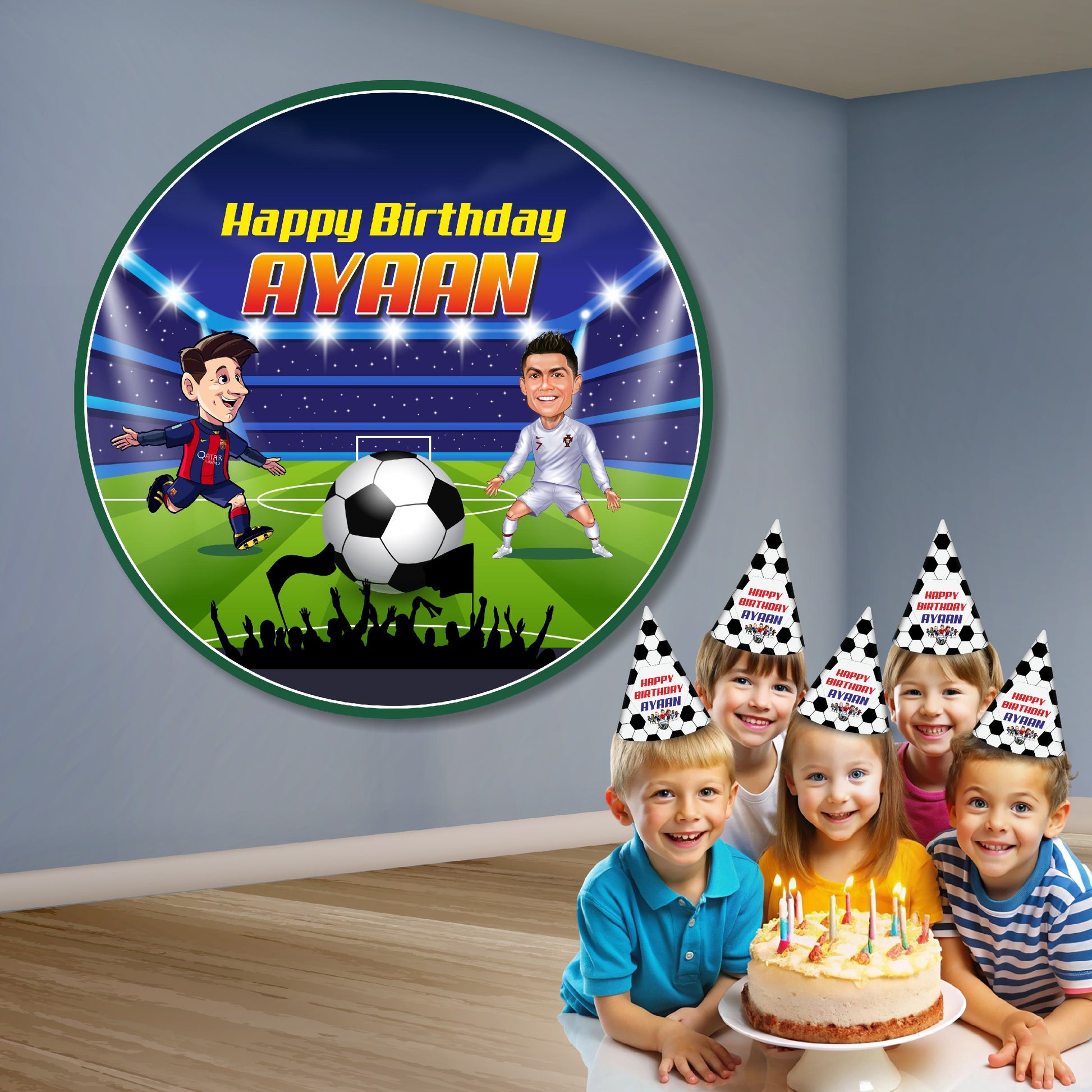 Get ready to score the winning goal! Our personalized Football Birthday Round Banner features dynamic graphics of a classic black and white soccer ball, grassy fields, and goal nets, all set for kick-off. Customize it with your little athlete's name and age to create the perfect centerpiece for their championship celebration!