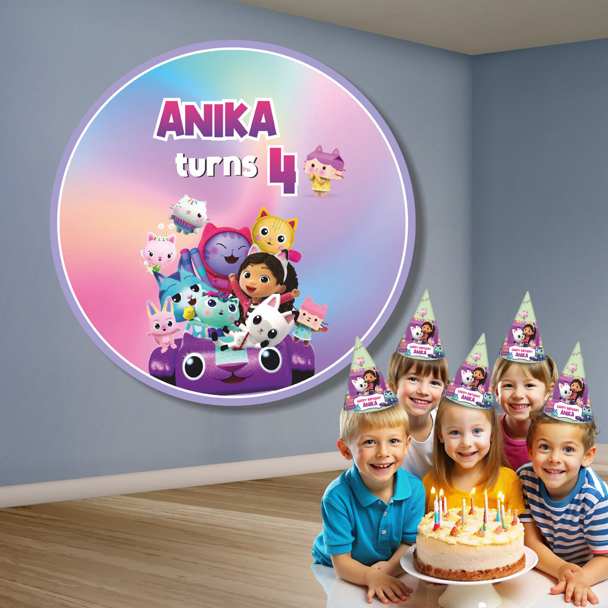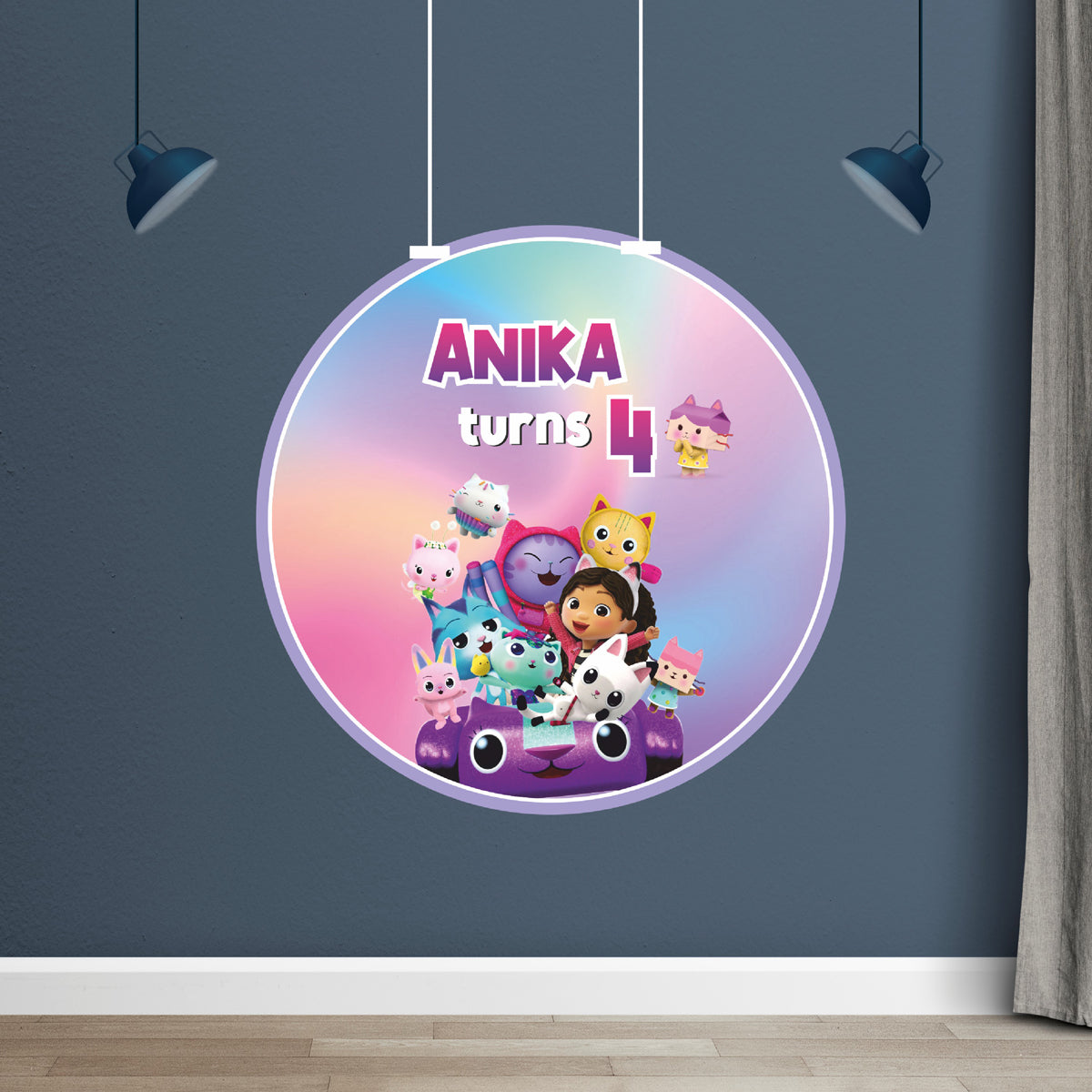 Make their birthday a-meow-zing with a custom Gabby's Dollhouse-themed banner. This vibrant banner is designed with all the beloved characters and a colourful, playful background. Personalize it with your child's name and age to create a charming, one-of-a-kind decoration that sets the stage for a day of imagination and fun, straight from the dollhouse! make their special day even more magical.