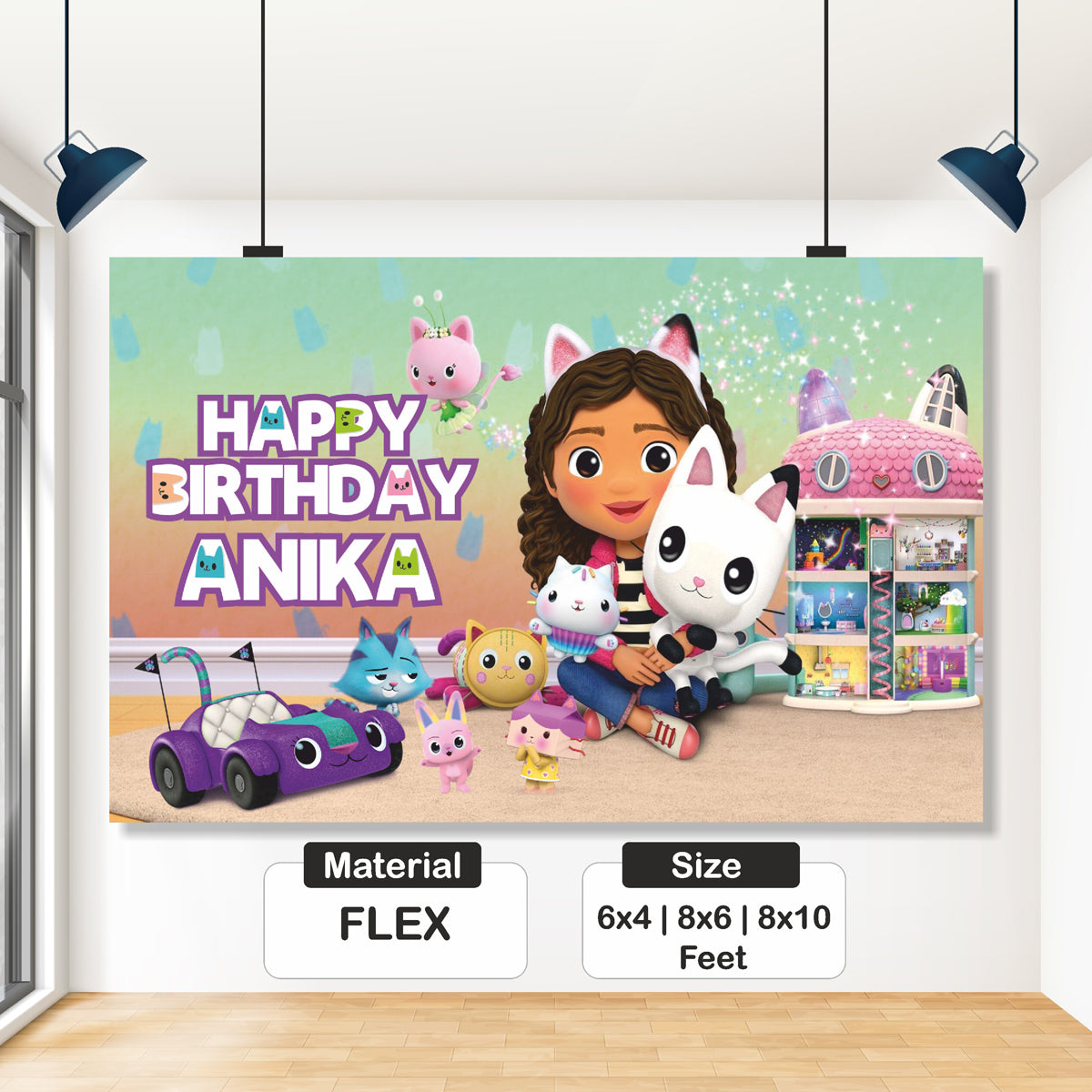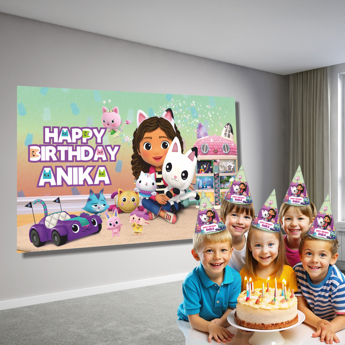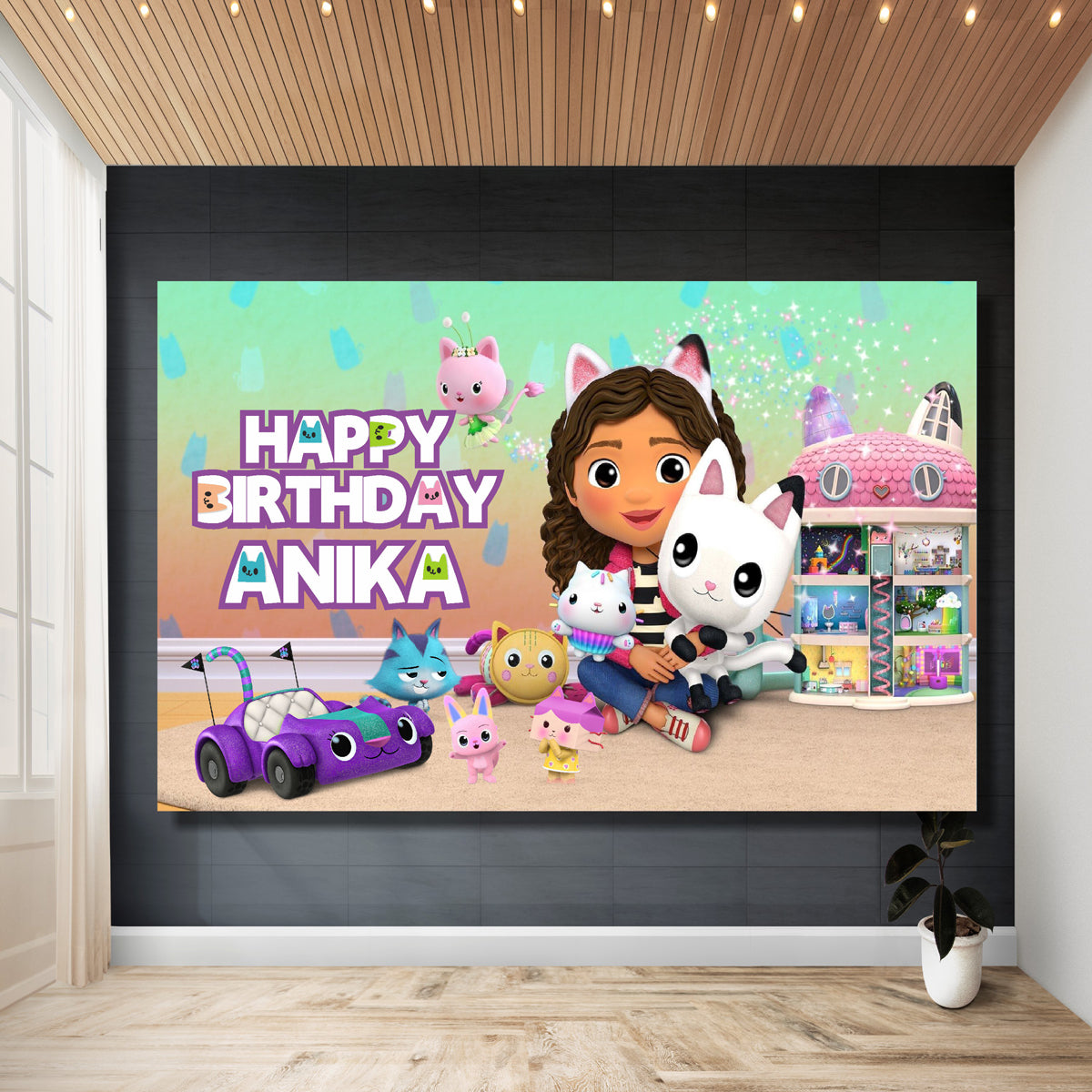 Make their birthday a-meow-zing with a custom Gabby's Dollhouse-themed banner. This vibrant banner is designed with all the beloved characters and a colorful, playful background. Personalize it with your child's name and age to create a charming, one-of-a-kind decoration that sets the stage for a day of imagination and fun, straight from the dollhouse! make their special day even more magical.