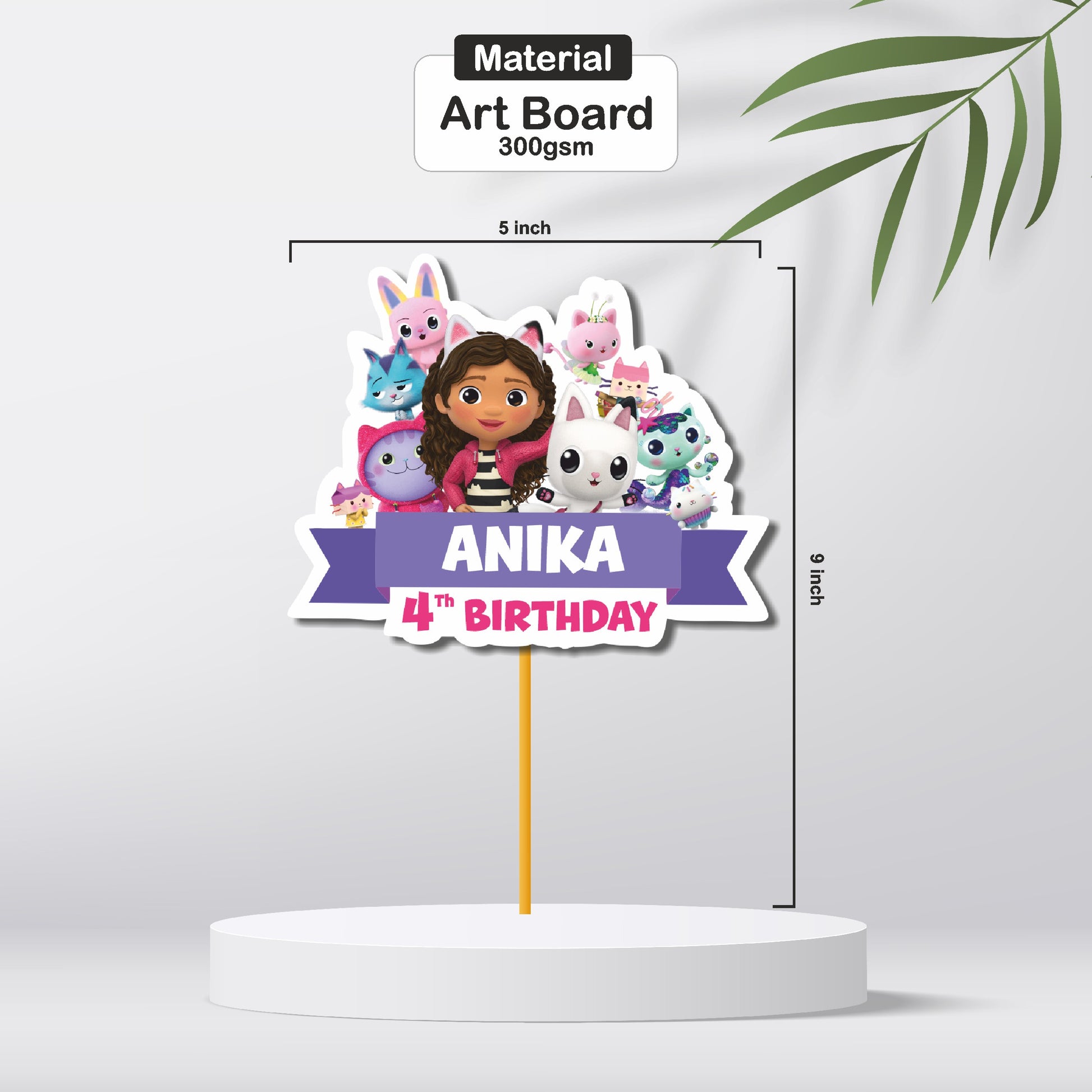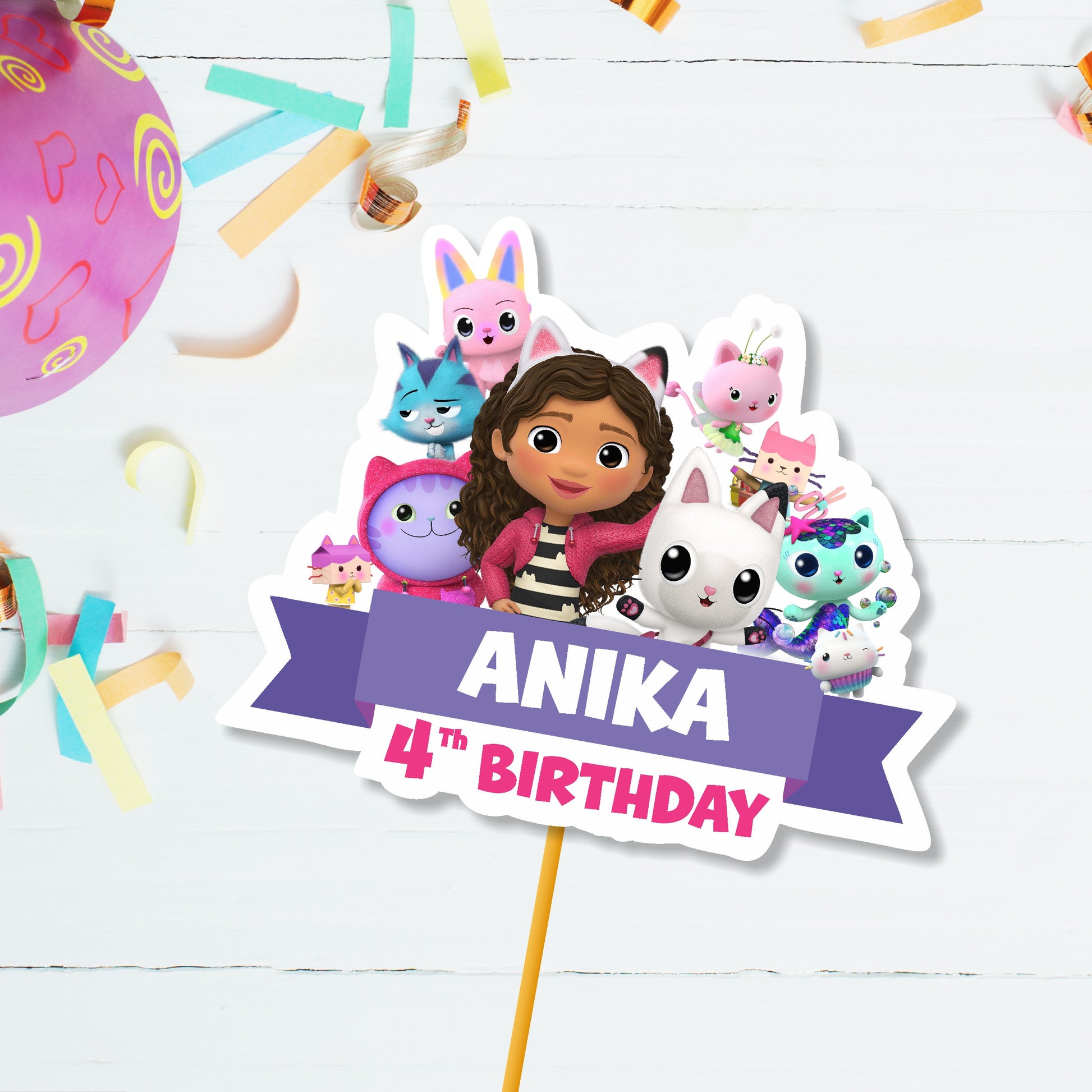 Make the birthday cake the centerpiece of the party with our custom Gabby's Dollhouse cake topper. This topper is designed with vibrant colors and beloved Cat-Tastic characters from the show, and it can be personalized with the birthday child's name, age, or a cheerful "Happy Birthday" message. It's a charming and unique decoration that's sure to make the cake unforgettable!