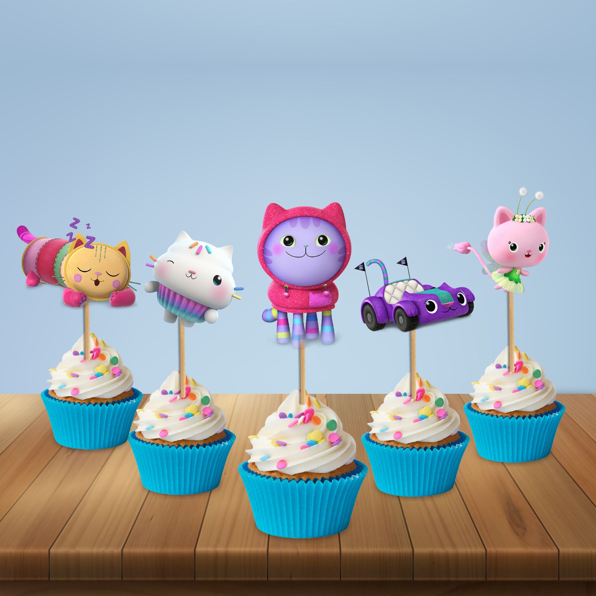 Time for a sweet surprise! These personalized Gabby's Dollhouse cupcake toppers feature fun cutouts of Gabby, Pandy Paws, and all their Cat-Tastic friends. adding the perfect tiny touch of magic to your cupcakes and desserts.