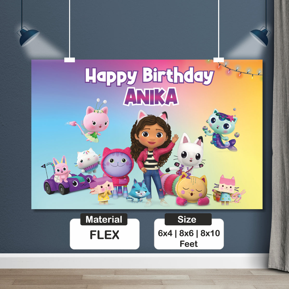 Make their birthday a-meow-zing with a custom Gabby's Dollhouse-themed banner. This vibrant banner is designed with all the beloved characters and a colorful, playful background. Personalize it with your child's name and age to create a charming, one-of-a-kind decoration that sets the stage for a day of imagination and fun, straight from the dollhouse! make their special day even more magical.
