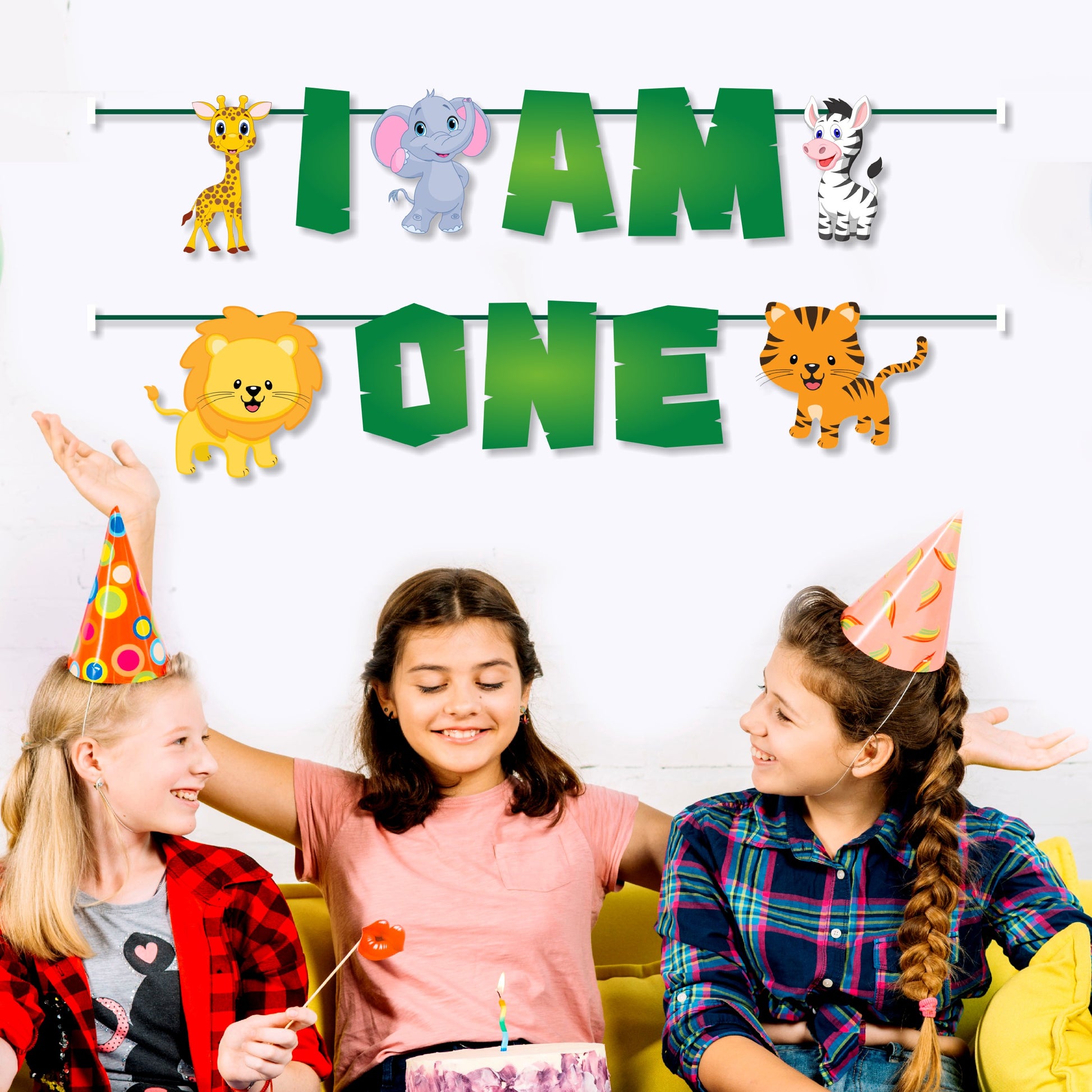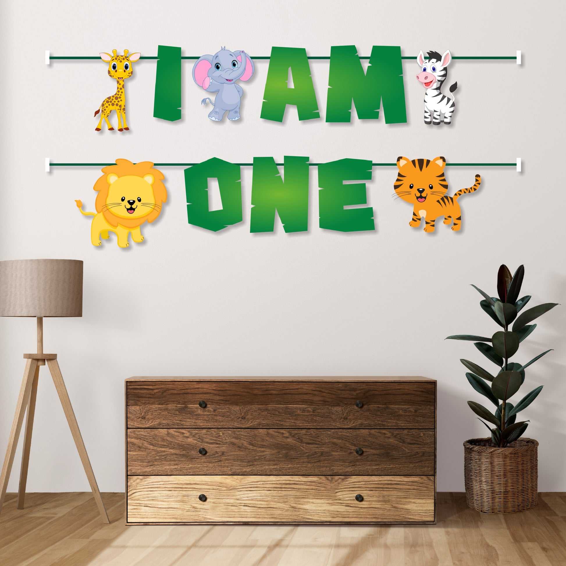 Let everyone know the big number! Our personalized Jungle Safari Age Bunting is a bright and bold way to celebrate the milestone. This banner features large, thematic flags that clearly display the birthday AGE (e.g., I am five), surrounded by playful animal prints (zebra, leopard) and hanging from decorative jungle vines. It’s a cheerful, unmissable decoration that centers the excitement on your child's big day!