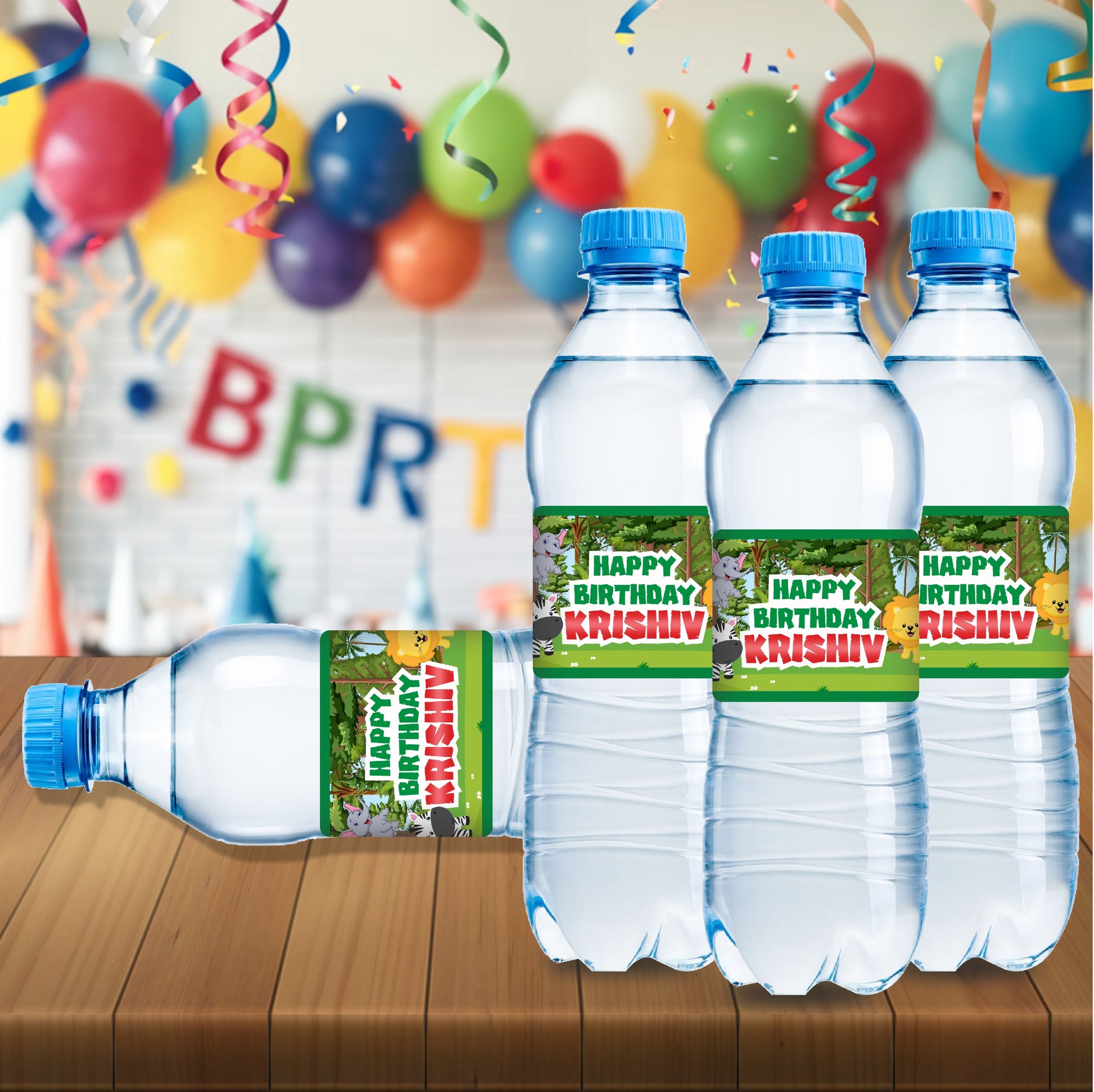 Transform ordinary drinks into Jungle Juice! Our custom Safari Water Bottle Labels are printed on high-quality, water-resistant material and feature a cohesive design with earthy tones, lush foliage, and silhouettes of safari animals. Fully personalized with the birthday child's name, age, these labels ensure every detail of your safari adventure is perfectly themed and picture-ready!