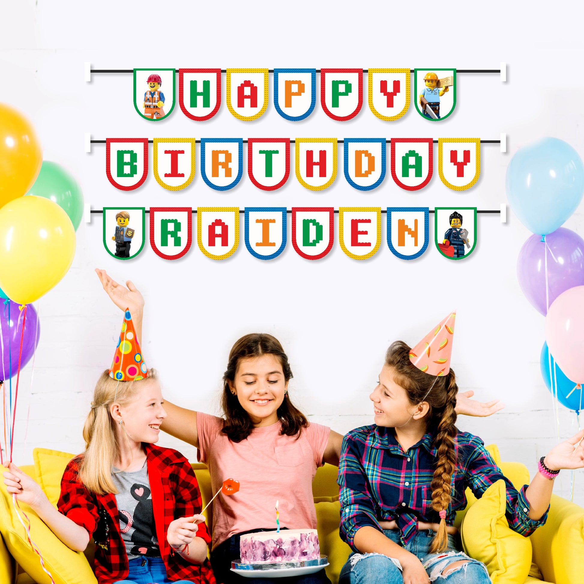 Get ready to construct the perfect party! Our custom LEGO-inspired birthday bunting is the ultimate decoration for a LEGO-themed celebration. The banner is made up of individual flags that resemble classic LEGO bricks, all strung together to spell out "Happy Birthday." Add the birthday boy or girl's name to create a one-of-a-kind decoration that will make their day extra special.