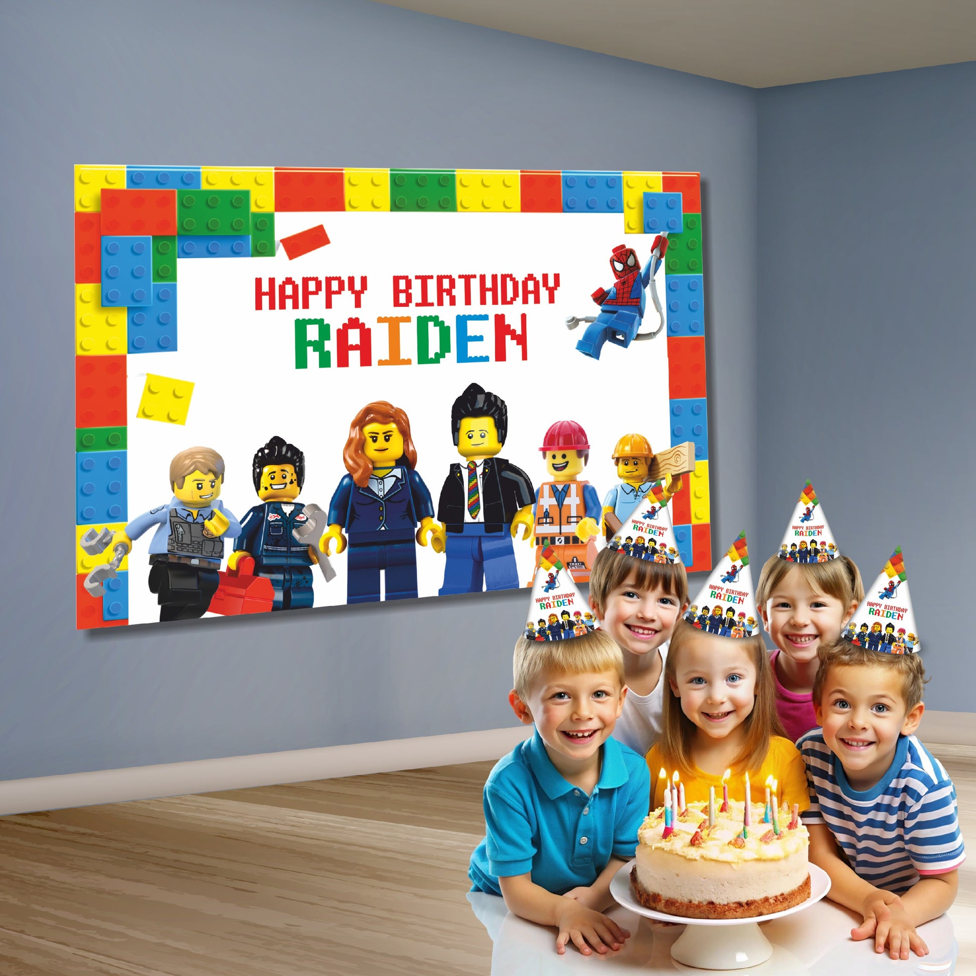 Celebrate your little builder's birthday with a personalized LEGO-themed banner! This banner features vibrant LEGO bricks and customizable lettering to spell out your child's name and age, making their special day extra awesome.