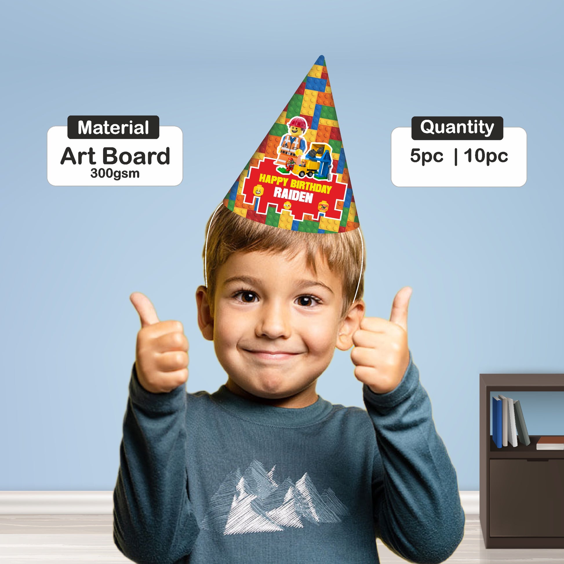 Become the head of the party crew with a personalized LEGO birthday hat! This hat is designed to look like a classic LEGO brick and can be customized with your child's name and age, making them the star of their LEGO-themed celebration. It's the perfect finishing touch for any little master builder's big day.