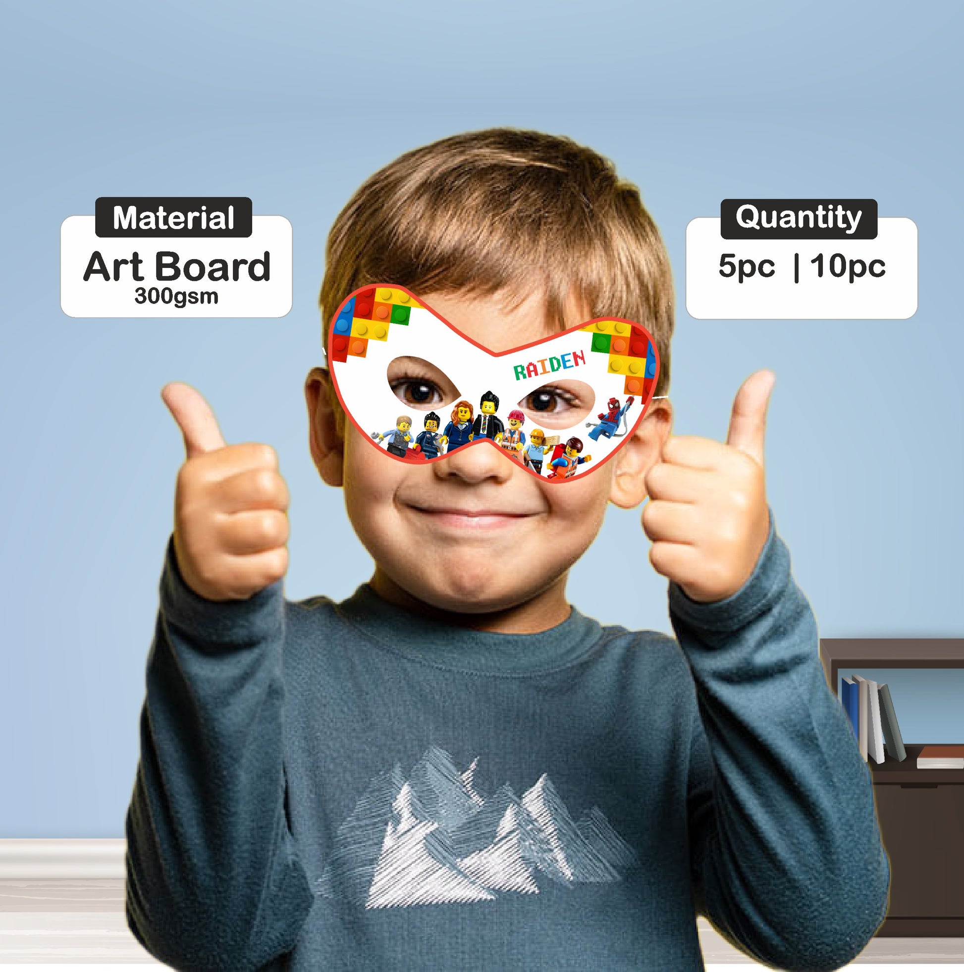 Give every party guest their own superhero look with a personalized LEGO eye mask! Designed to look like a LEGO character's eyes, this mask can be customized with the birthday child's name, making them the leader of the party crew. It's a fun and unique accessory that's perfect for a LEGO-themed adventure!