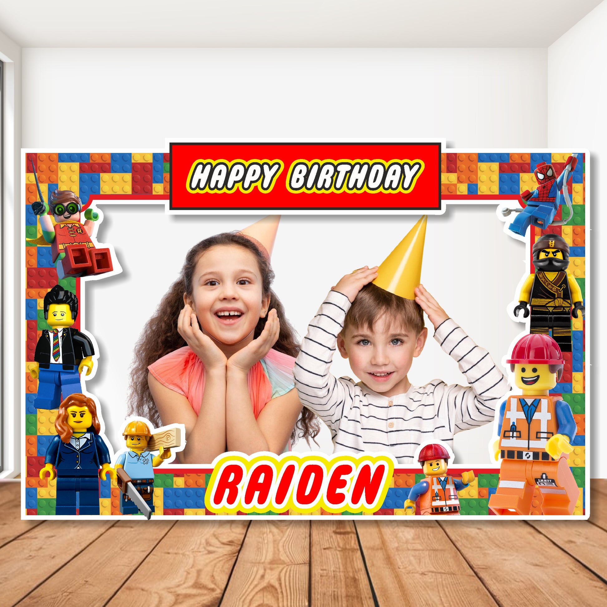 Build some epic memories with a personalized LEGO photo booth! This custom backdrop is a vibrant world of colorful LEGO bricks and can be personalized with your child's name and age. It's the perfect spot for guests to snap fun, unforgettable photos and celebrate the birthday builder in style!