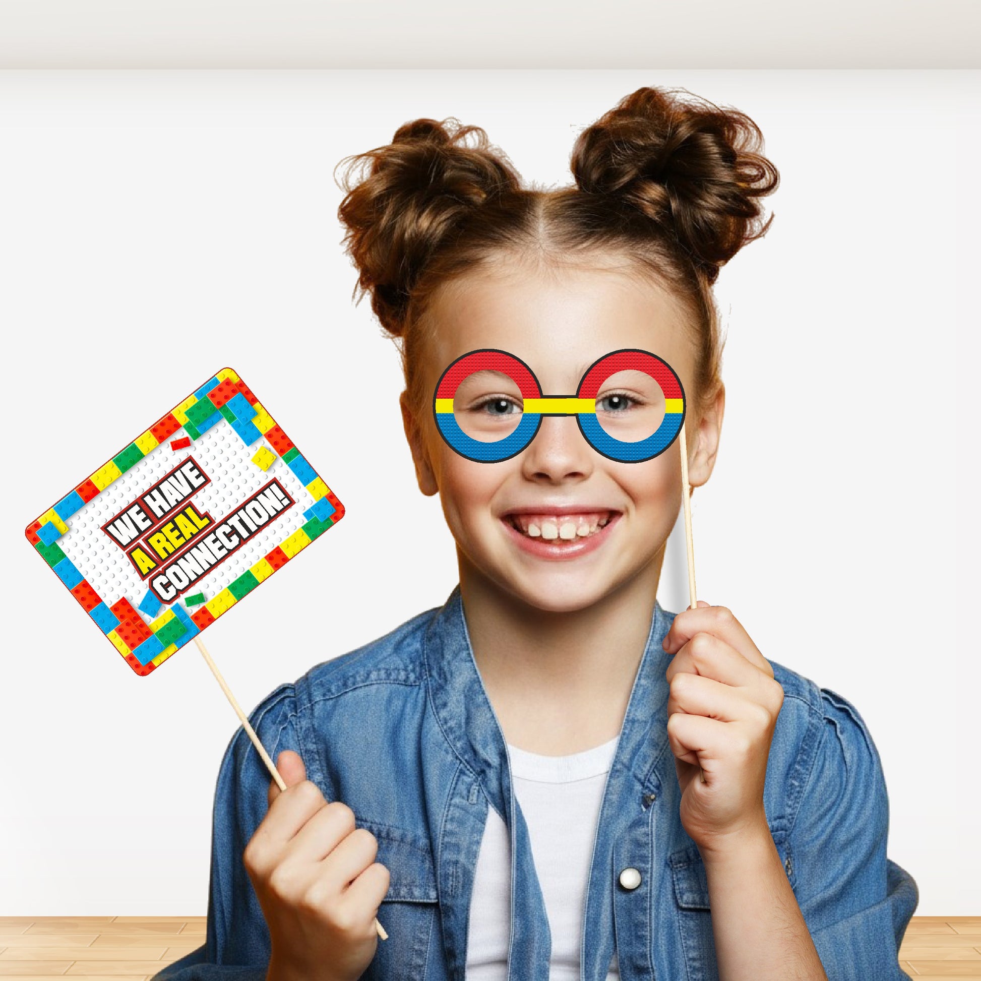 Get ready to strike a pose and build some memories! Our personalized LEGO photo booth props are the perfect addition to any party. The set includes a variety of fun, LEGO-themed cutouts like brick-shaped glasses, minifigure hair, and speech bubbles with custom text. They're a super fun way to encourage goofy photos and keep guests entertained!