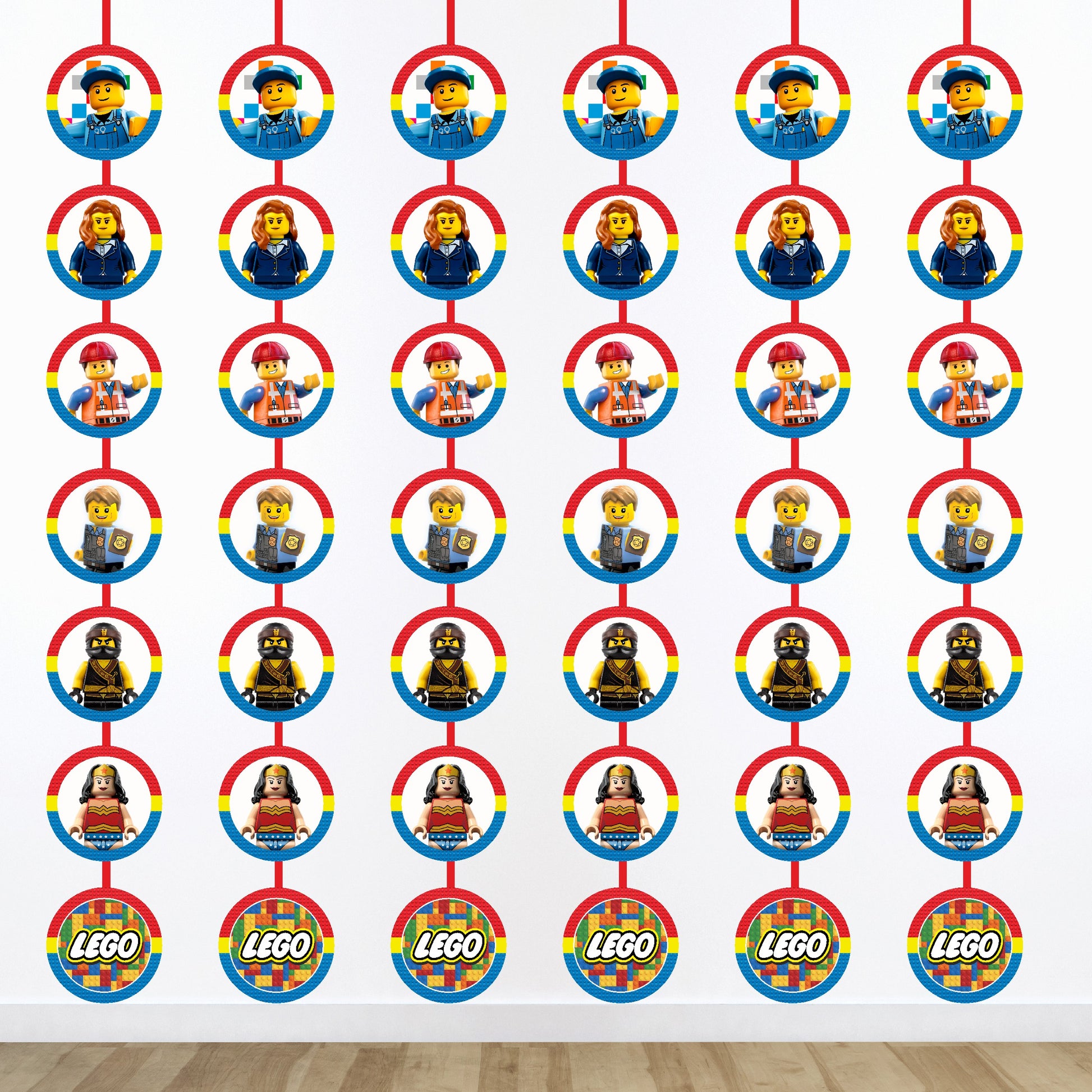 Construct a memorable party atmosphere with our custom LEGO-themed danglers. These hanging decorations showcase iconic LEGO brick and character designs. They're an imaginative way to fill your party space and delight every little master builder. They're a great way to make the whole party feel like a fun, building-block adventure.