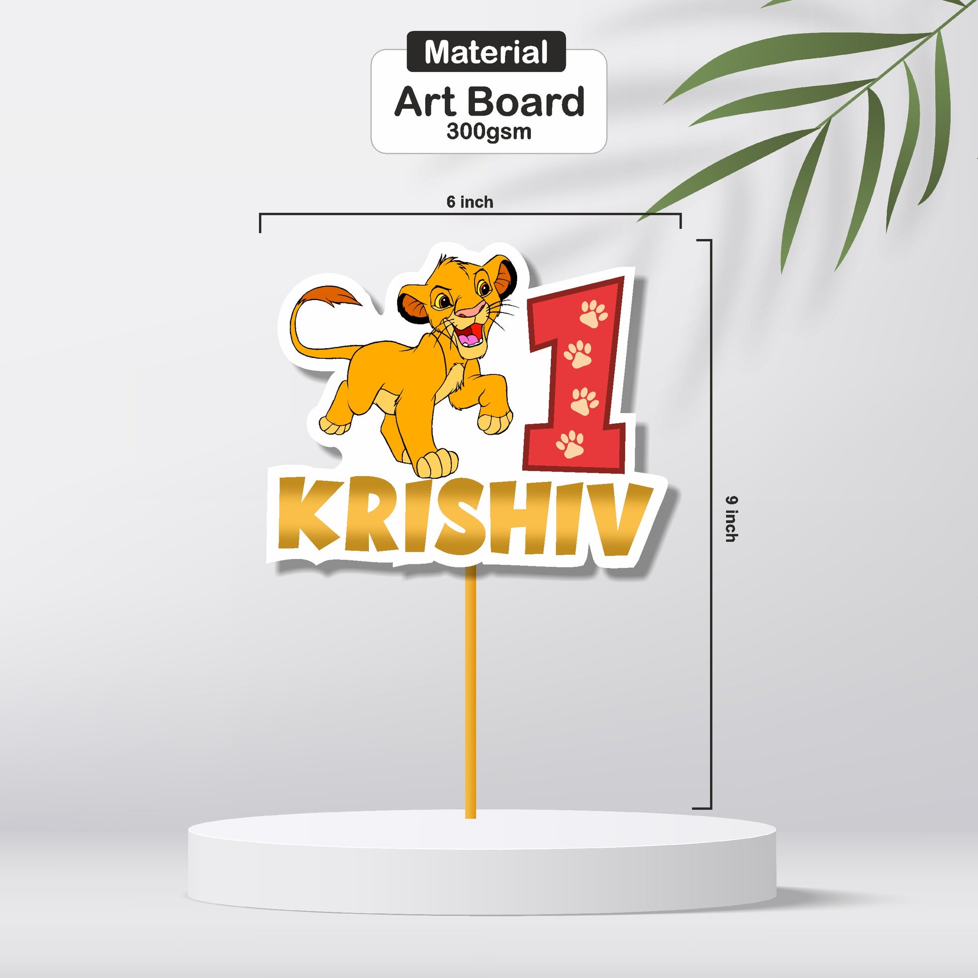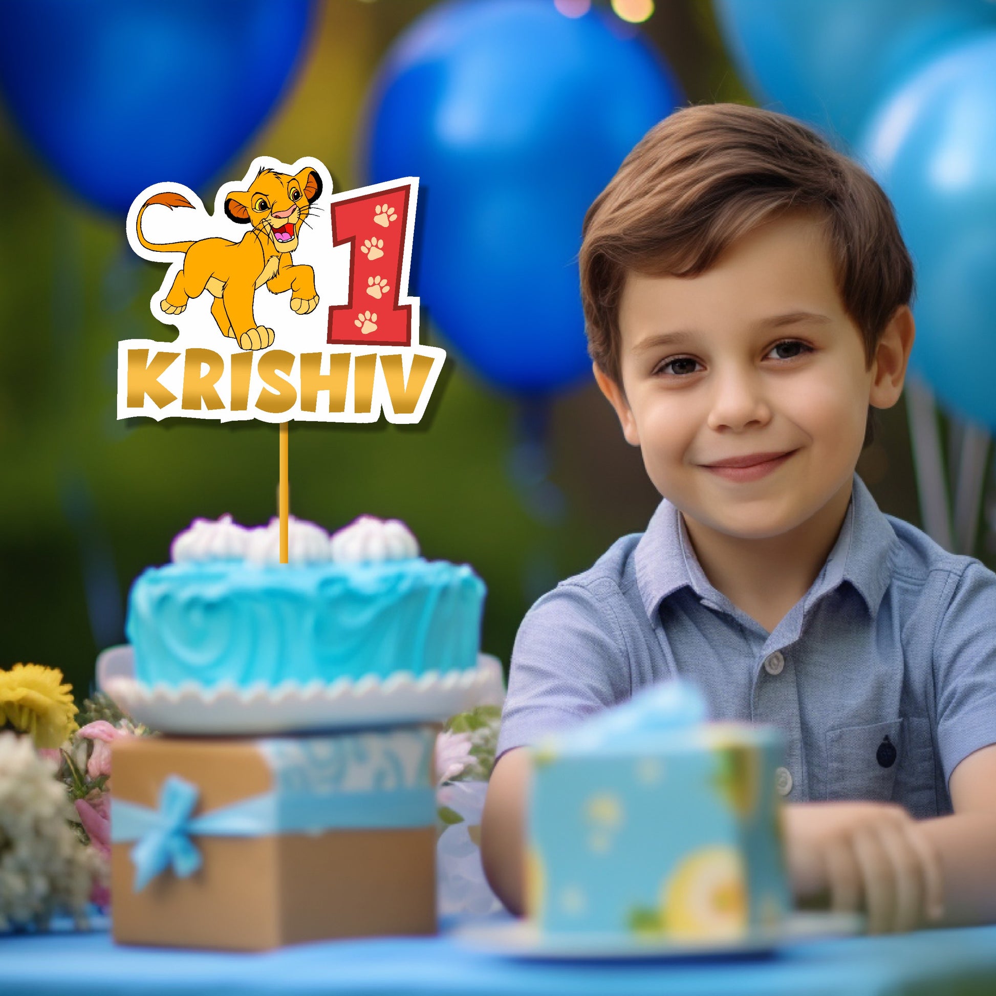Crown your cake the King of the Jungle! Our personalized Lion King Cake Topper is the perfect centerpiece for your birthday dessert. This vibrant, multi-layered topper features an adorable scene with young Simba, Timon, and Pumbaa nestled among tropical leaves and flowers. The topper is prominently customized with your child's name and age, making it a cheerful, eye-catching focal point for your Pride Lands celebration!