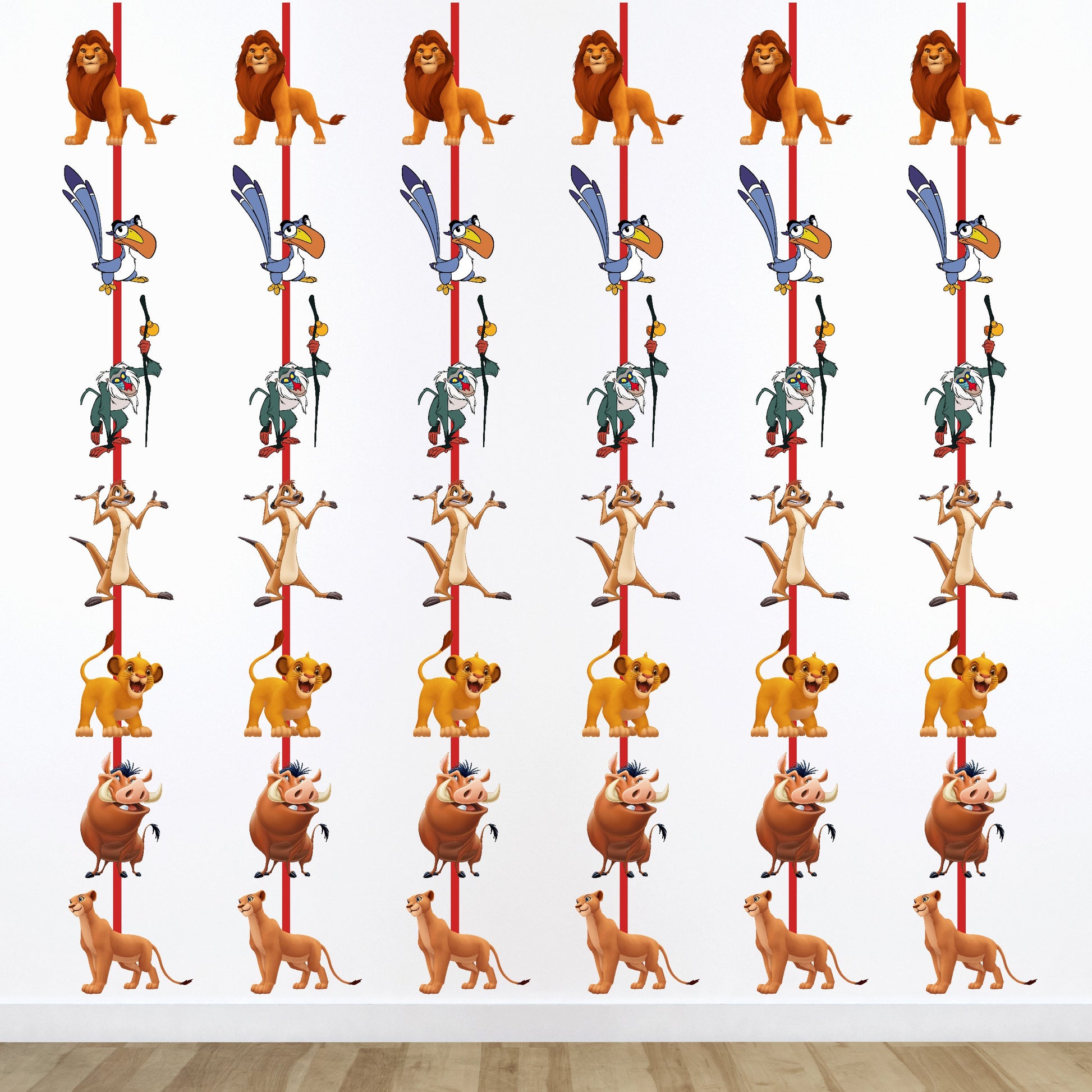 Swing into the jungle fun! Our personalized Lion King Danglers feature lightweight cutouts of young Simba playing, Timon and Pumbaa enjoying grubs, and bright tropical leaves. Each swirl hangs from a metallic spring, creating a fun, They are the perfect way to add dynamic, playful movement to your party ceiling, mimicking the vines and energy of the Pride Lands!